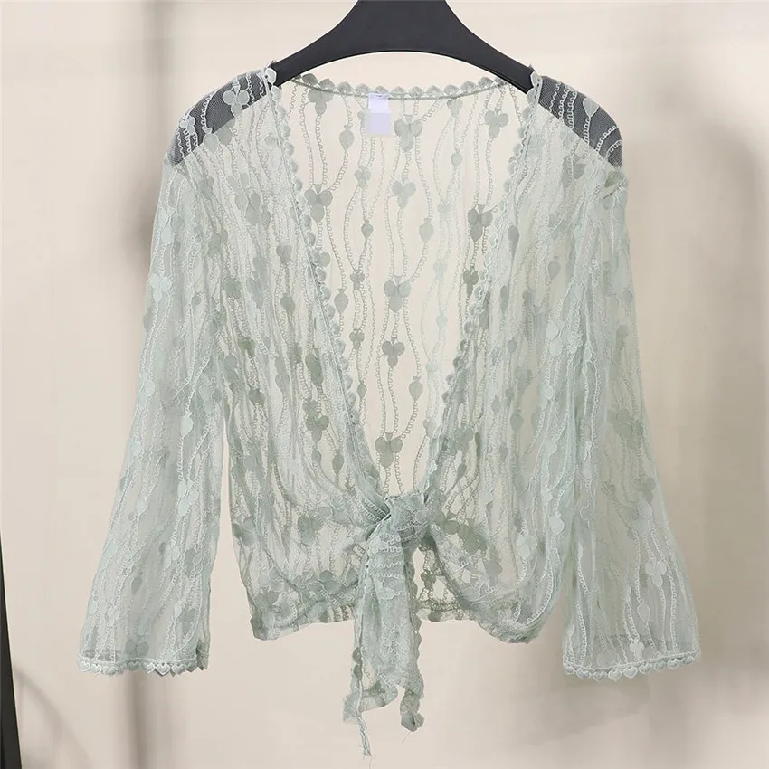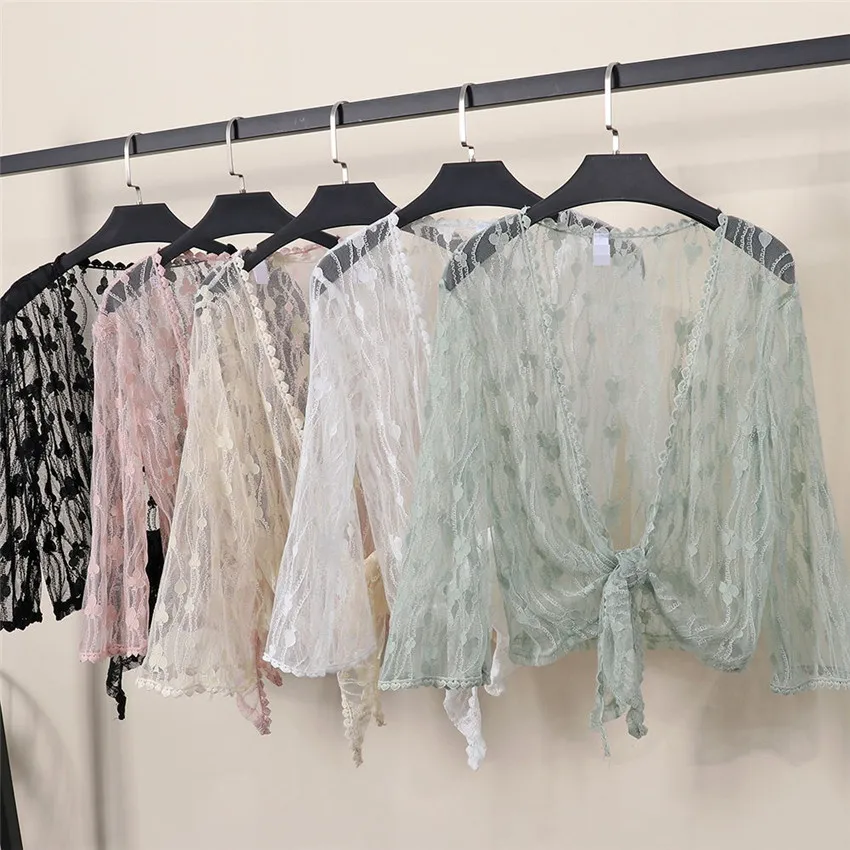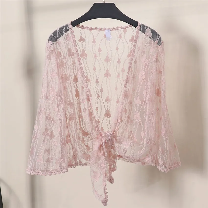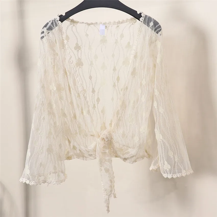 Женская кружевная накидка WZ868, элегантная белая накидка-болеро с бантом, аксессуар для защиты от солнца, летний топ, 2019