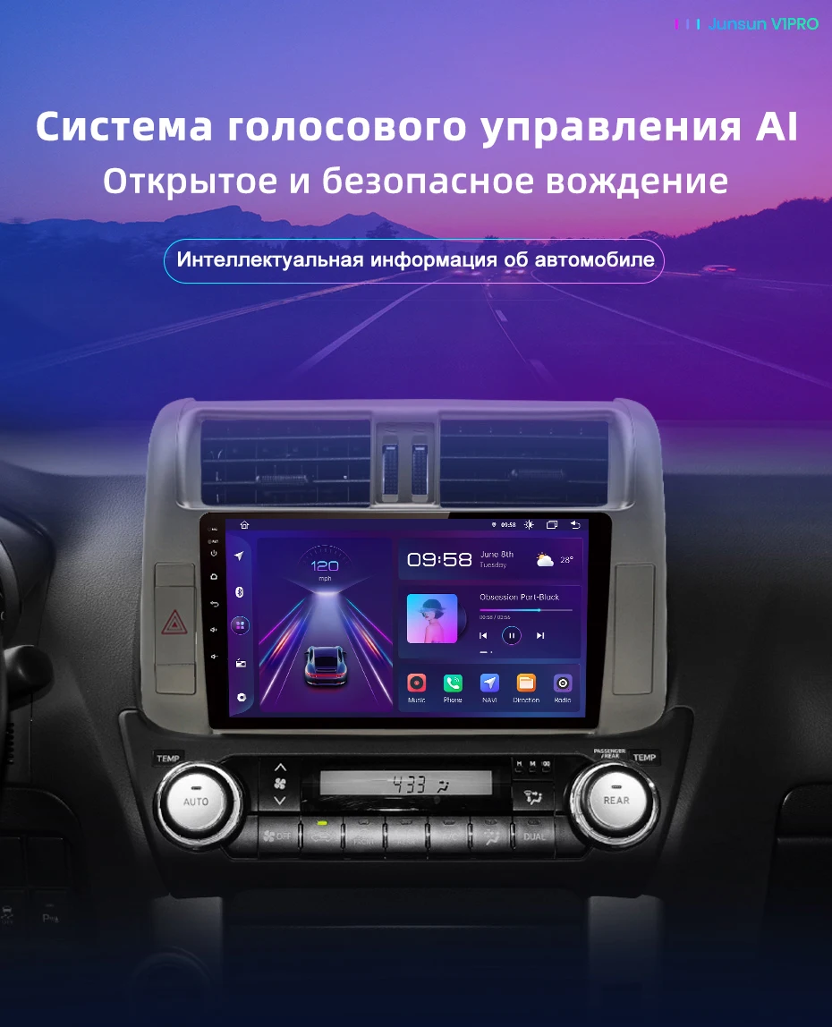 Junsun V1pro AI голосовое автомобильное радио Android Авто мультимедиа для Toyota Land Cruiser Prado 150 2009-2013 4G Carplay 2din Авторадио