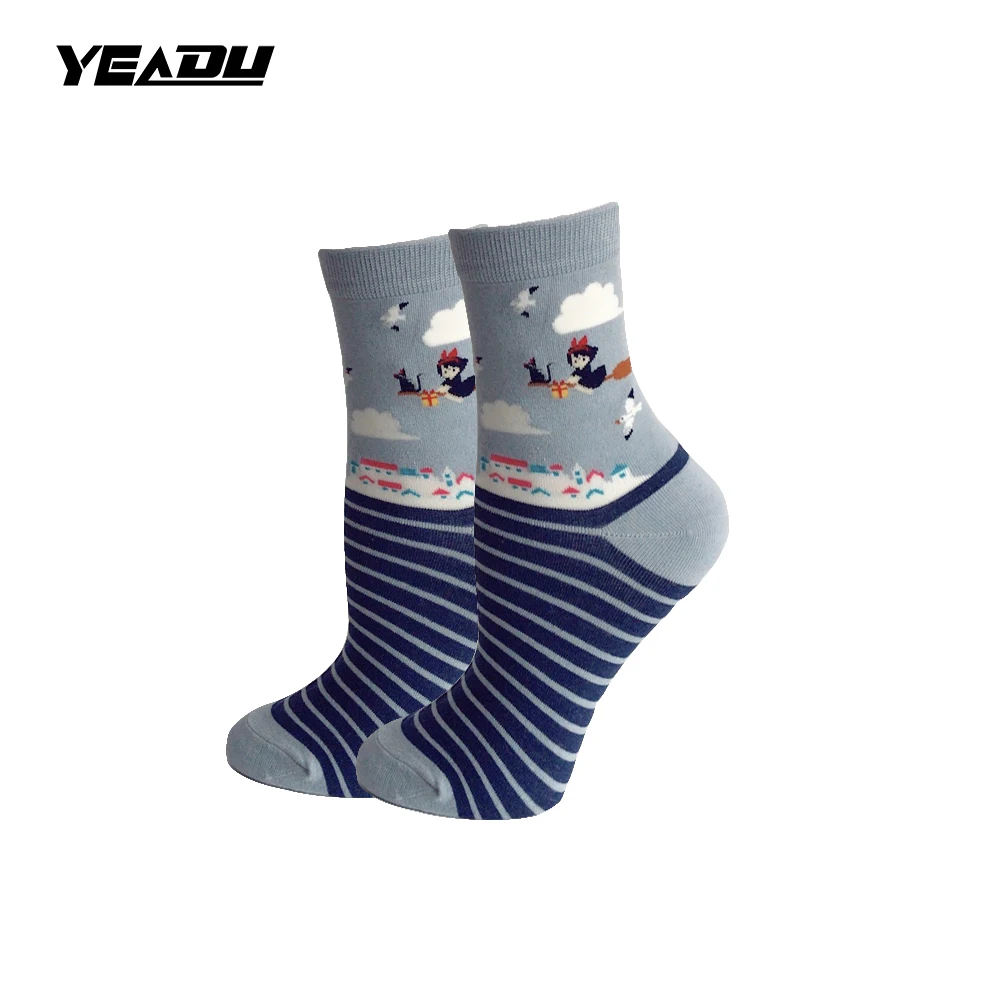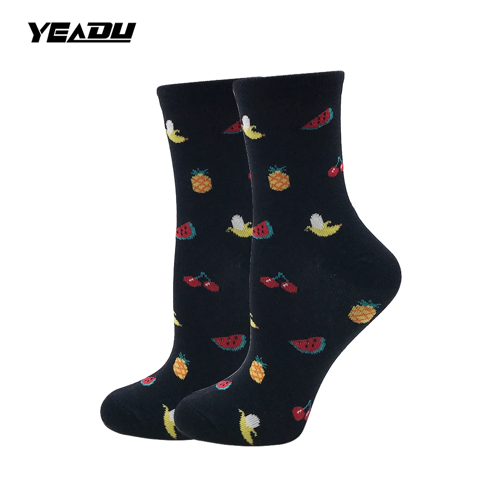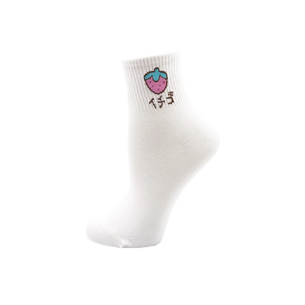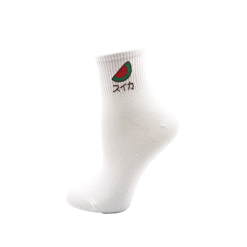 Носки женские хлопковые, с изображением белых фруктов, в японском стиле
