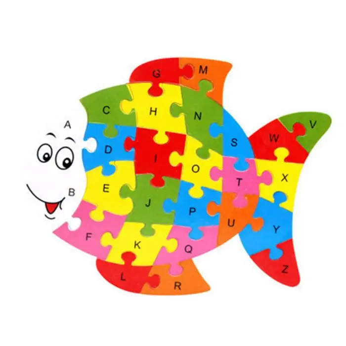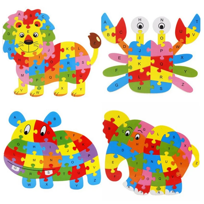 Пазл детский деревянный с английским алфавитом, цифрами, животными, фруктами