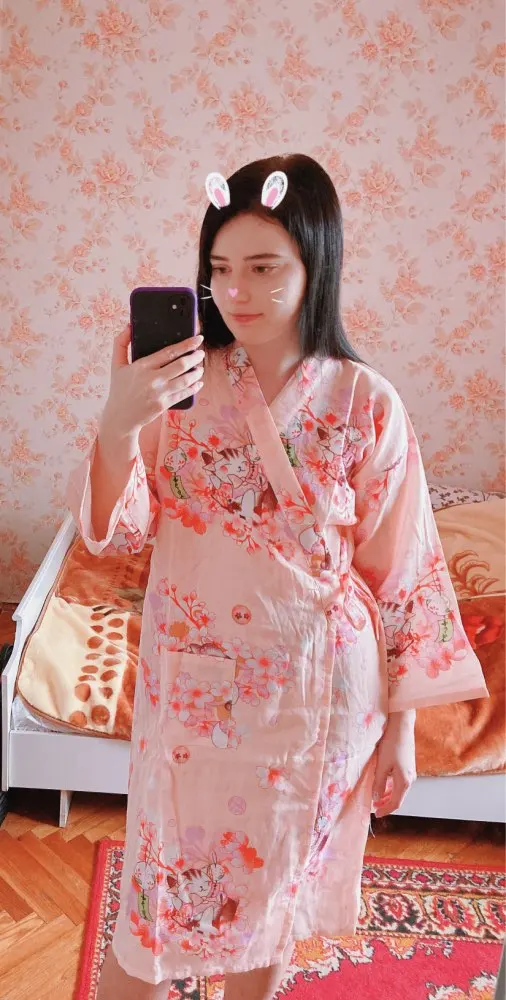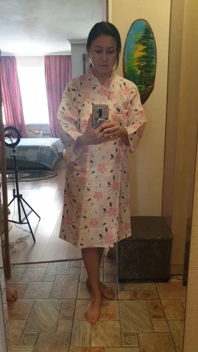 Посылка пришла супер быстро! Качество на высоте, это я уже второй халатик тут покупаю. Изначально есть специфический запах, но после 1 стирки он исчезает. Беру себе размер L, хотя можно было бы и М, но я люблю когда посвободнее. Рекомендую
