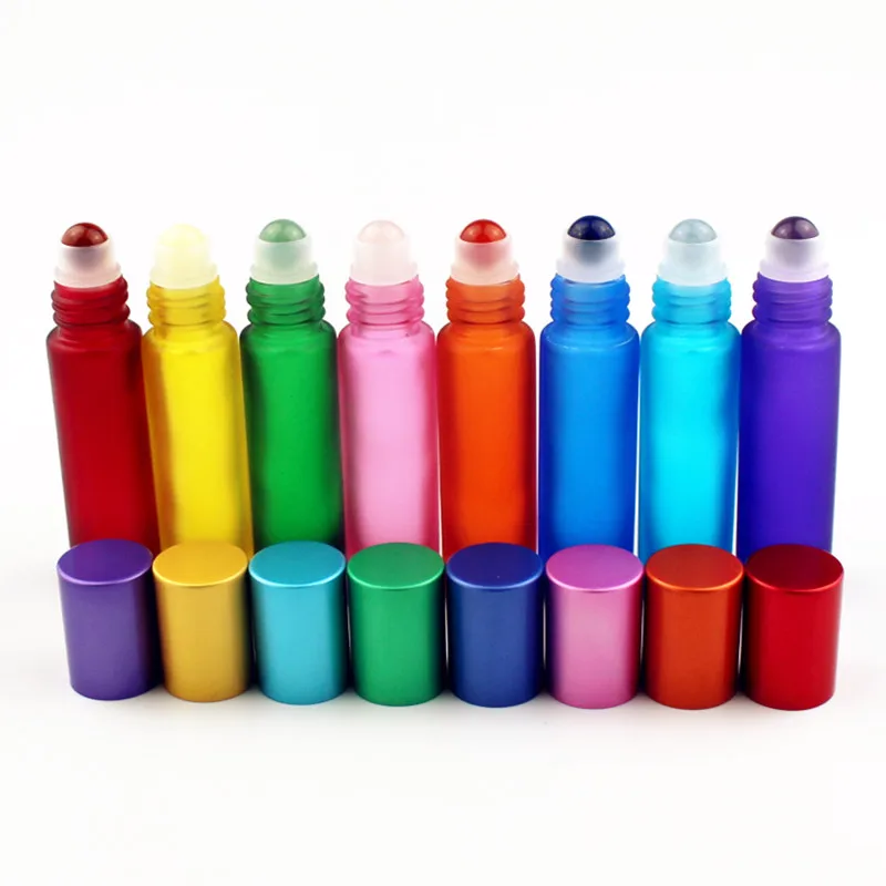 Флакон для духов цветной стеклянный с натуральными драгоценными камнями, роликовые пустые многоразовые флаконы для эфирных масел, 3 шт., 10 мл