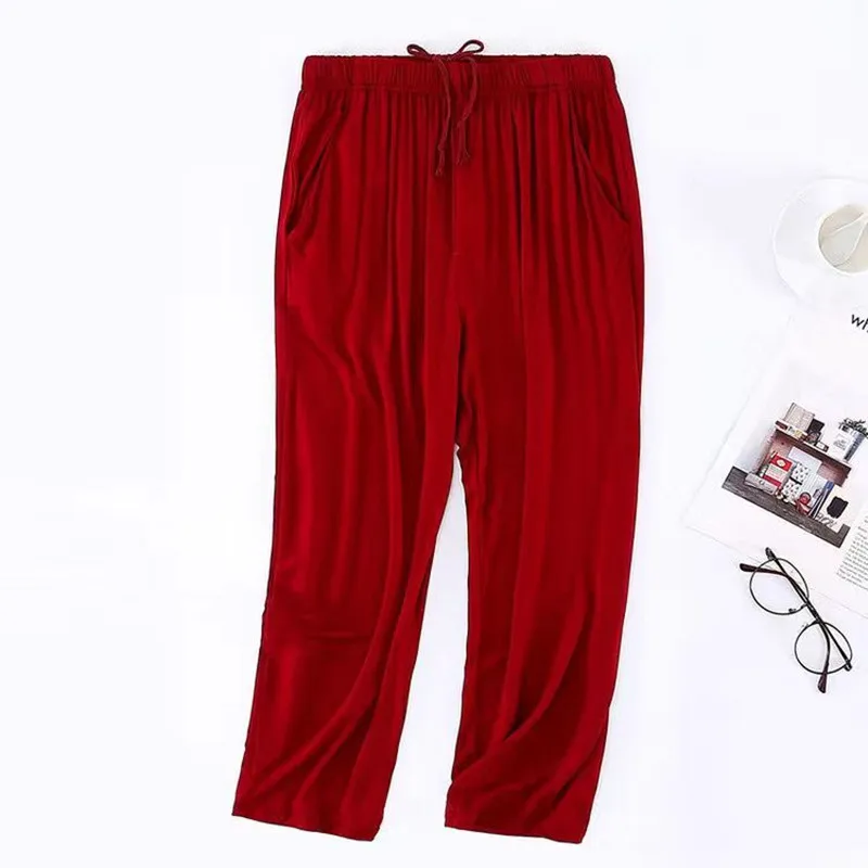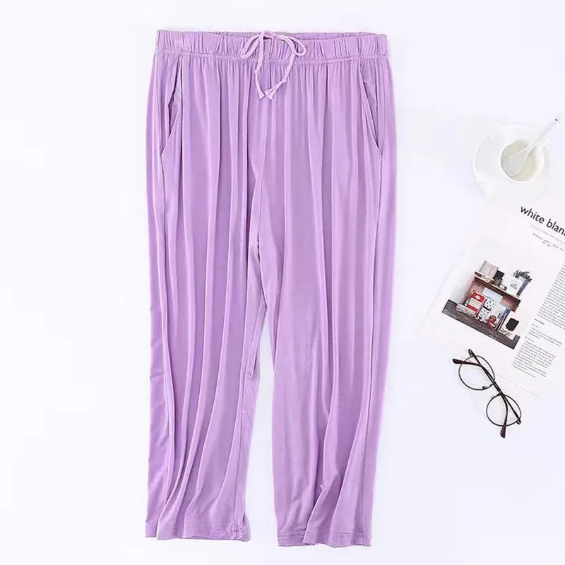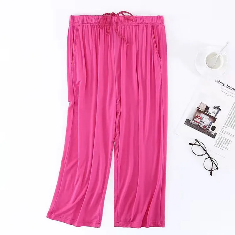 Женские длинные штаны из модала, свободные домашние пижамы, сексуальные повседневные однотонные, на завязках, лето для сна, низ, укороченные брюки