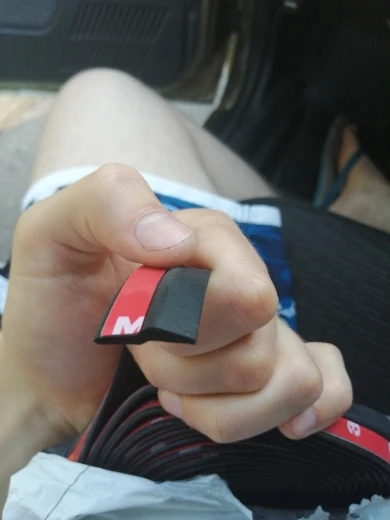 Сразу установить не получилось–трудно подлезть к переднему краю двери. Скотч показался слабоват, держится плоховато