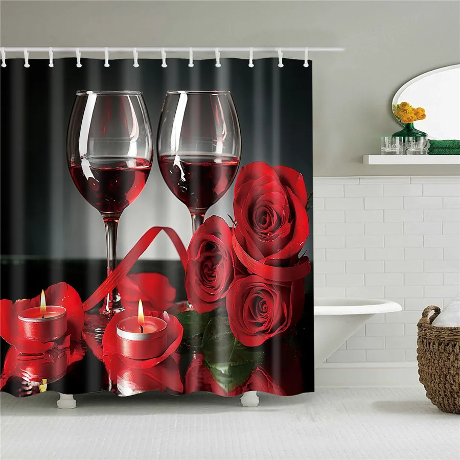 Занавеска для душа в японском стиле с цветами вишни, красная роза, ...