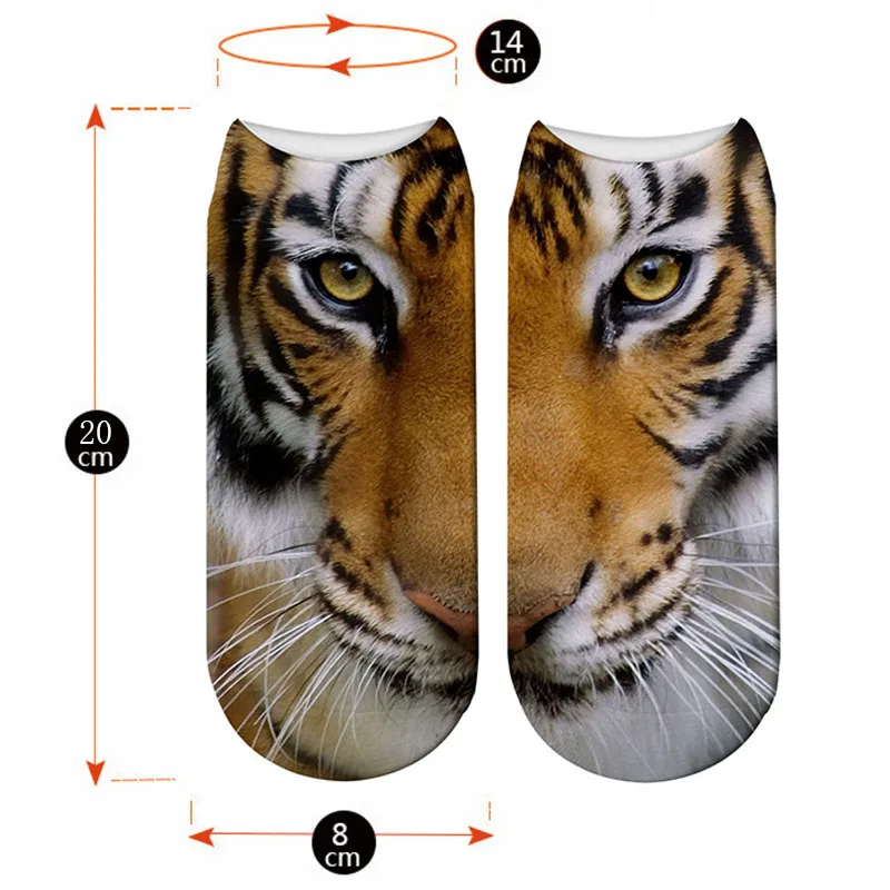 Носки женские короткие с забавным принтом тигра, 5ZWS65