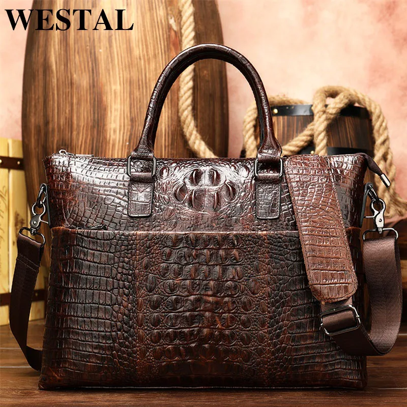 WESTAL мужской портфель, мужская сумка из натуральной кожи, Офисные Сумки для мужчин, сумка для ноутбука, кожаный портфель, мужские дизайнерские компьютерные сумки Croco