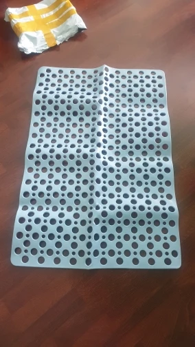 коврик соответствует описанию. Однако довольно плотно прилегает к полу. И вода под ним сходит медленее. Не мешало бы немного увеличить зазор.