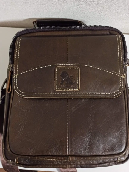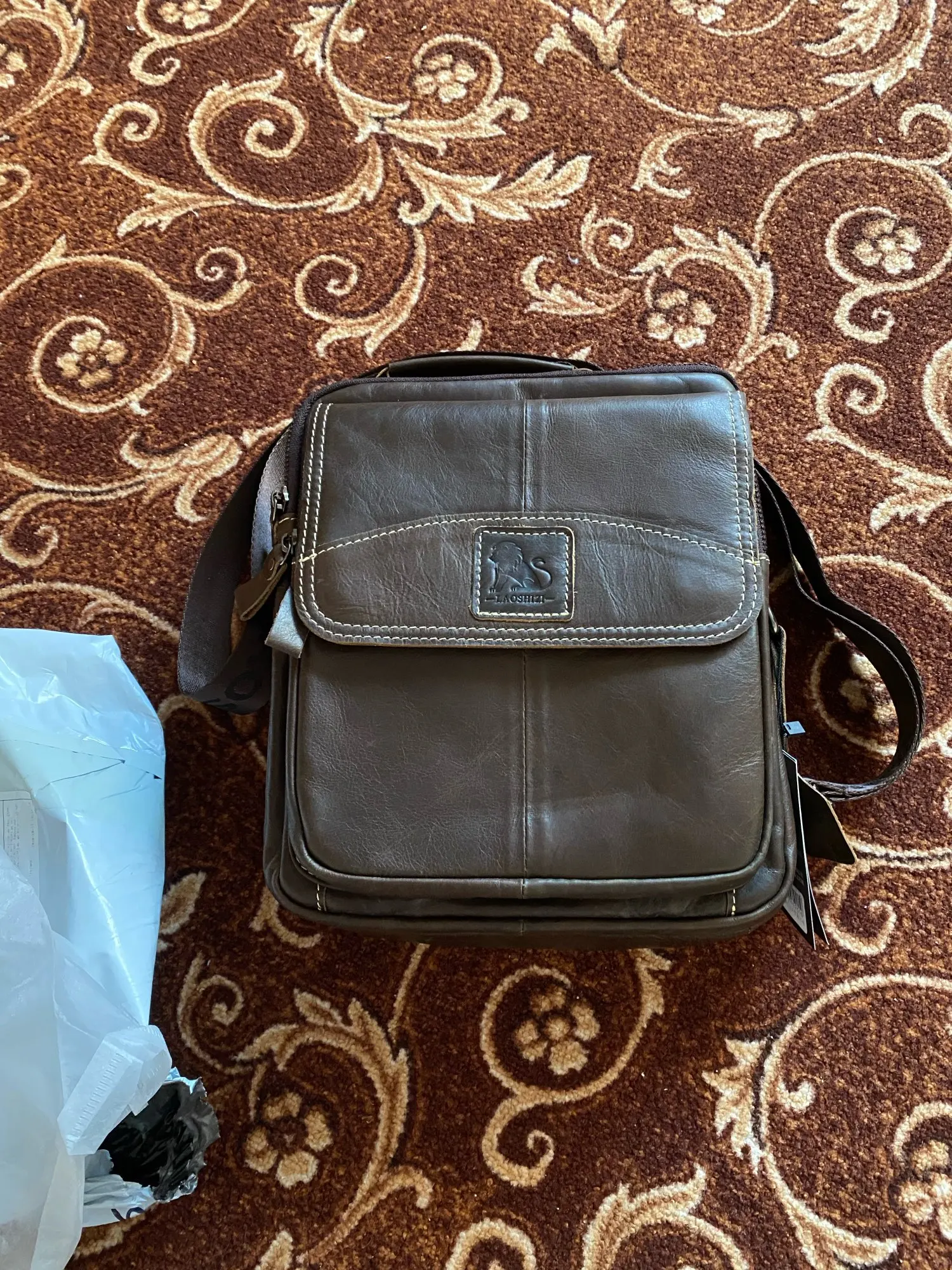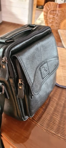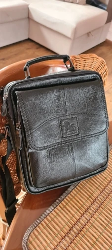 Сумку для мужа заказывала.Продавец с отправкой не совсем торопился.На смс не сразу отвечал.Сумка обычная.Кожа похожа на натуральную.Размер сумки не маленькая.Вместительная,объемная.Если бы был ремень через плечо не текстиль ,то смотрелась лучше,но увы,ремень текстильный.Качеством довольны.В живую моделью не совсем довольна.Продавцу спасибо.Заказала,получила свой товар.Муж сказал для работы будет пользоваться.