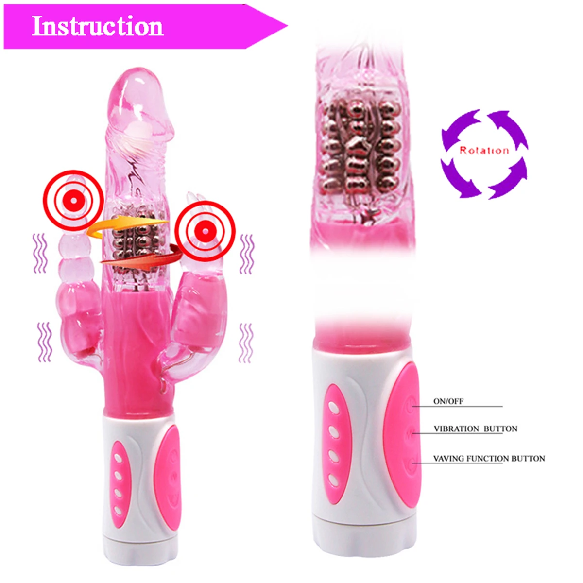 Вибратор Кролик Банни для тройного удовольствия, для точки G, для клитора, с поворотом на стимулятор Анальная пробка градусов, интимные игрушки для женщин, фаллоимитатор вибратор