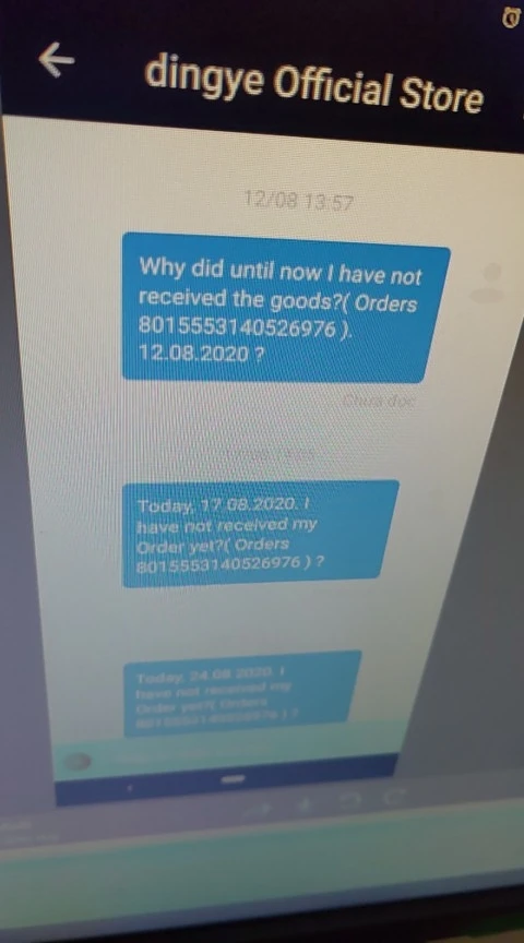 Я до сих пор не получил товар со дня заказа (16,062020 до сегодня 15 сентября 2020). Я связался с поставщиком, но все еще не получил ответа. Надеюсь, что страница продаж просмотрит мой недостающий заказ. (8015553140526976 заказа)