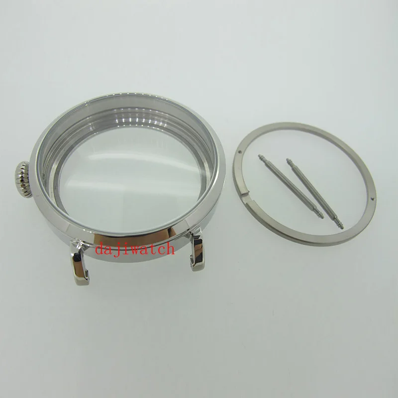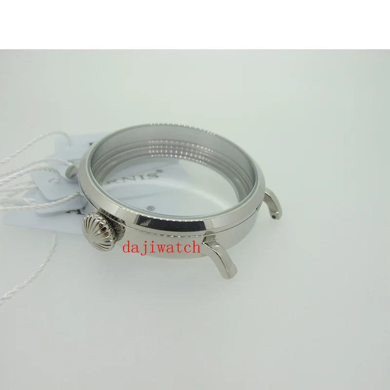 46 мм полированный чехол PVD из нержавеющей стали серебристого цвета для механизма 6498 6497, чехол с минеральным хрустальным стеклом