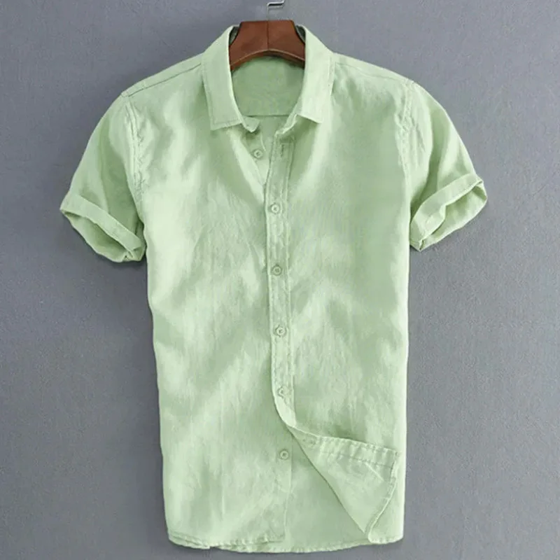 Мужские рубашки, из льна, с коротким рукавом, летняя, однотонная, п...
