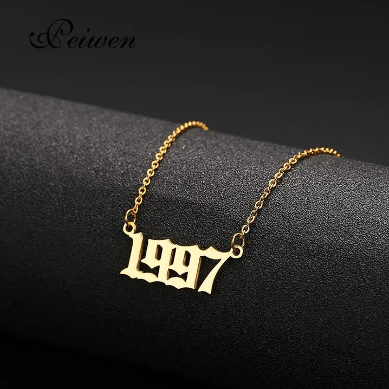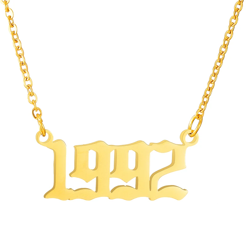 Старое Английское ожерелье с цифрами на заказ, ожерелья с датой для женщин, мужчин, подарок на день рождения, персонализированный 1980-2019 ювелирные изделия с чокерами