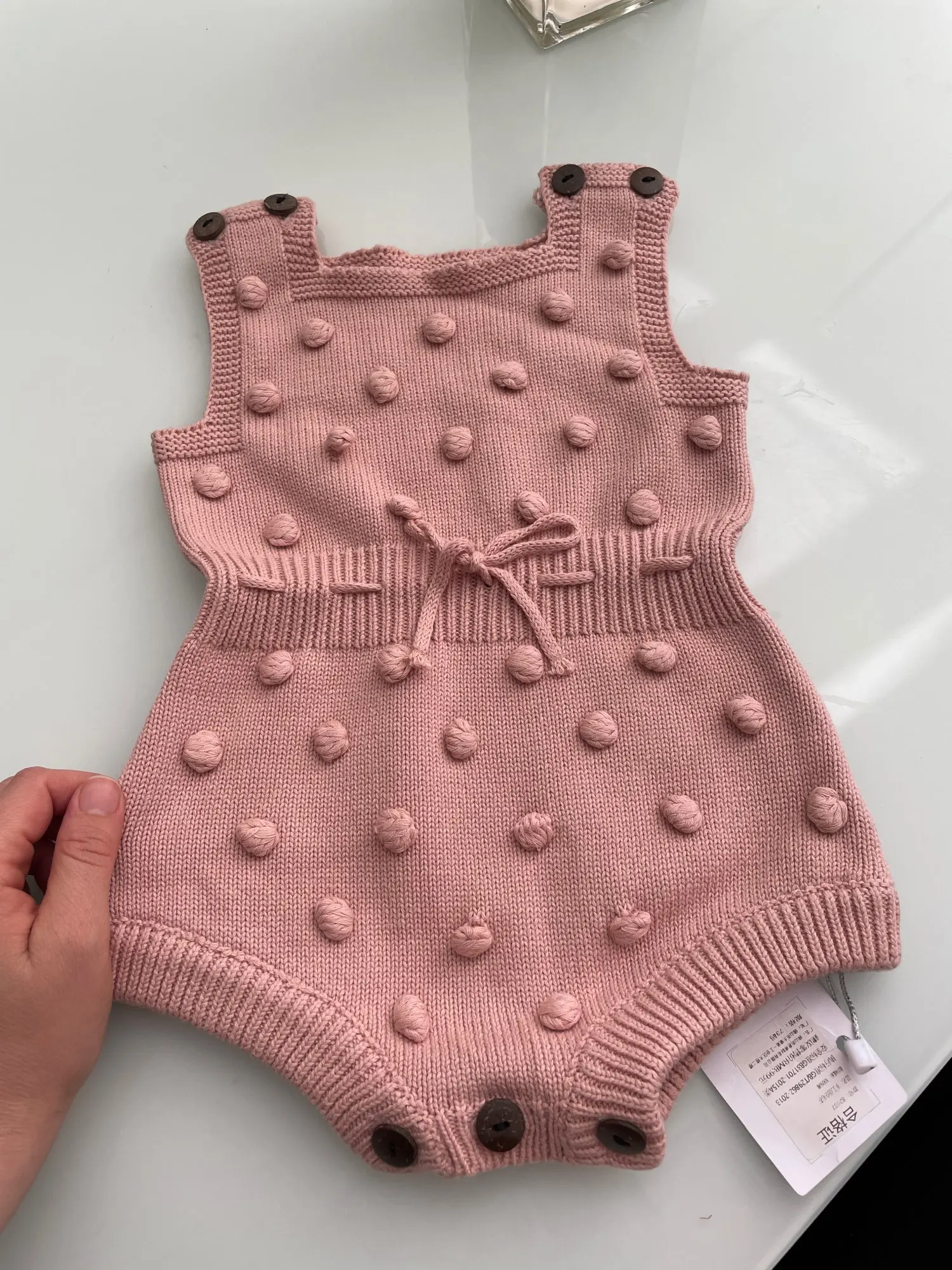 Детский вязаный комбинезон с помпоном, 3-24 мес, для девочек, хлопок 2021, 100%, комбинезон для мальчиков, для малышей