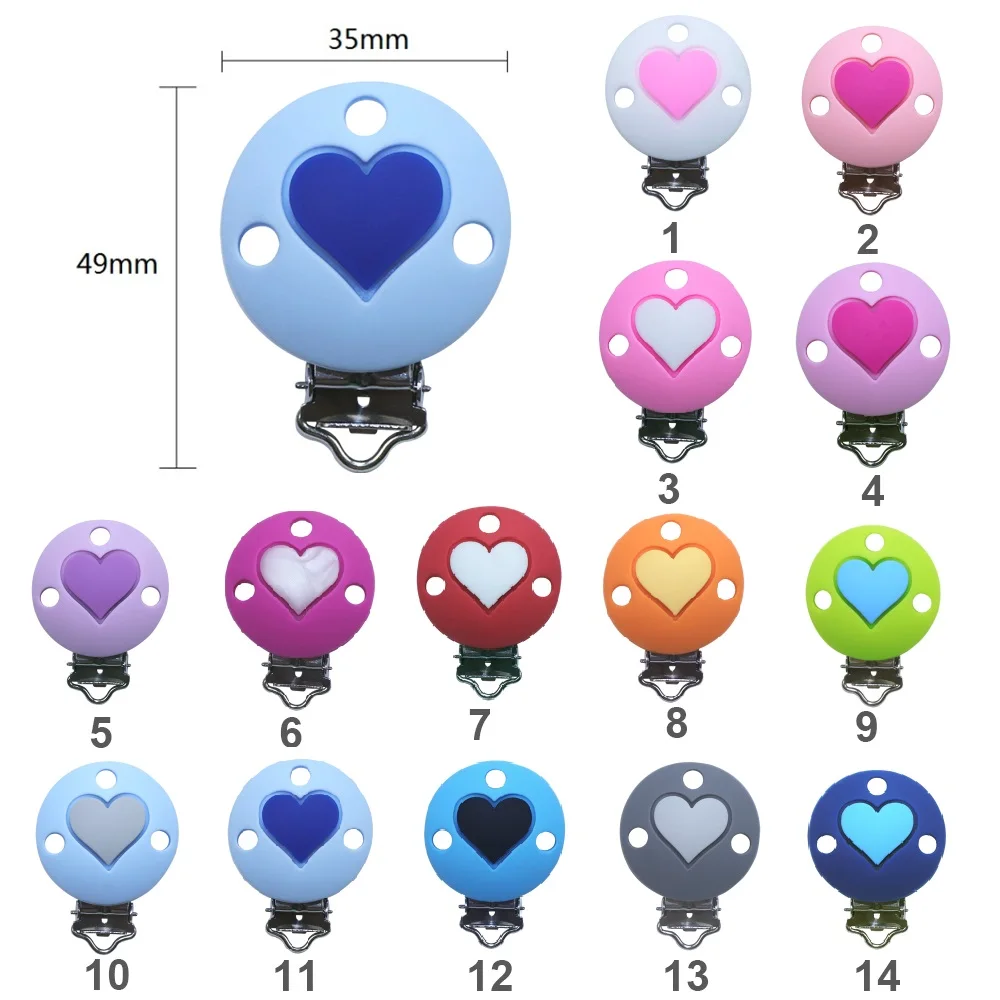 Цепочка-зажим для соски BOBO.BOX, 10 шт., силиконовая, в форме серд...