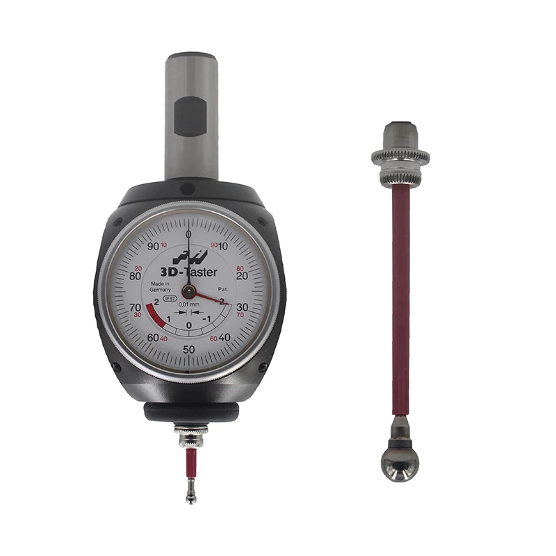 3D edge finder зажимается в держателе инструмента и устанавливается на шпиндель машины. При установке на главном валу станка runout (T.I.R) указывает полностью на Ноль градусов. В это время координаты шпинделя станка расположены на краю заготовки. В то же время, нулевая точка и длина измерения могут быть установлены быстро и легко. Вы можете приблизиться к заготовке в любом направлении (ось X-Y-Z) (следовательно, название «3D edge finder»). Когда циферблат указывает на ноль, координаты шпинделя станка и поверхности заготовки совпадают. Для фрезерования и обработки EDM (изолированный зонд) оборудование, Универсальный 3D edge finder является высокоточным и универсальным измерительным инструментом.