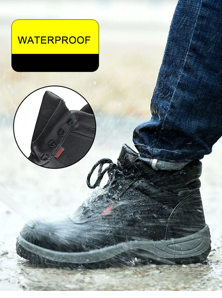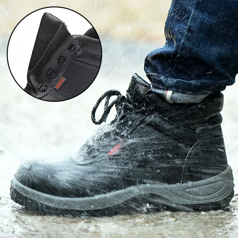 Мужские рабочие ботинки со стальным носком, теплые осенне-зимние кожаные мужские ботинки с защитой от ударов, тактические военные ботинки, Рабочая защитная обувь