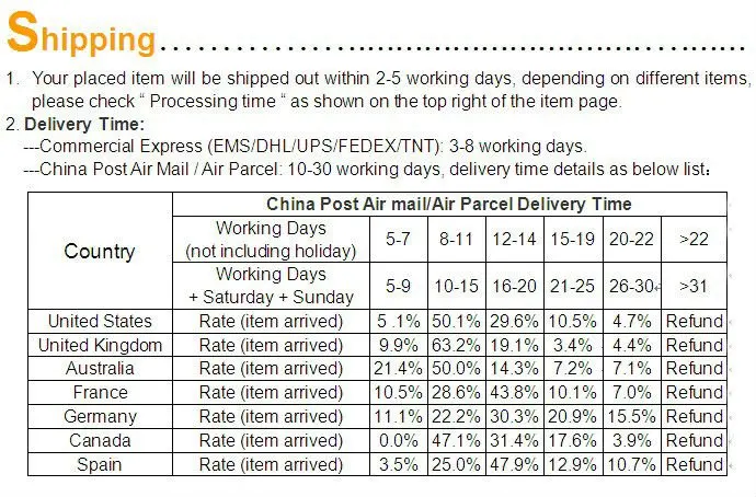 Ответ: Обычно товары на складе отправляются в течение 48 часов, товары на заказ доставляются в течение 7-15 дней (в зависимости от количества товаров).