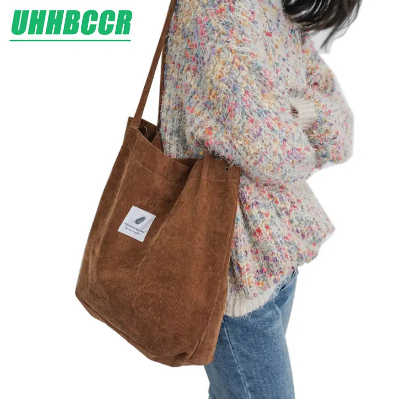 Женская вместительная Вельветовая сумка UHHBCCR, однотонная Складная многоразовая пляжная сумка для покупок
