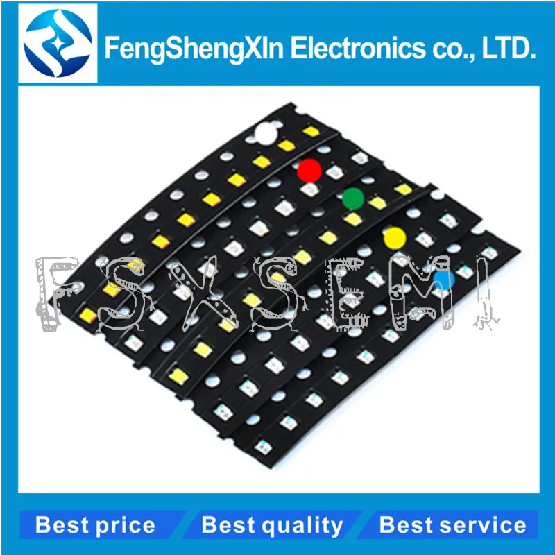 5 цветов X 20 шт. = 100 шт., 0402, 5050, 5730, 1210, 1206, 3528, 0805, набор светодиодов SMD в ассортименте, зеленыйкрасныйбелыйсинийжелтый
