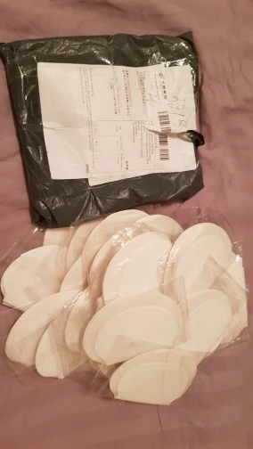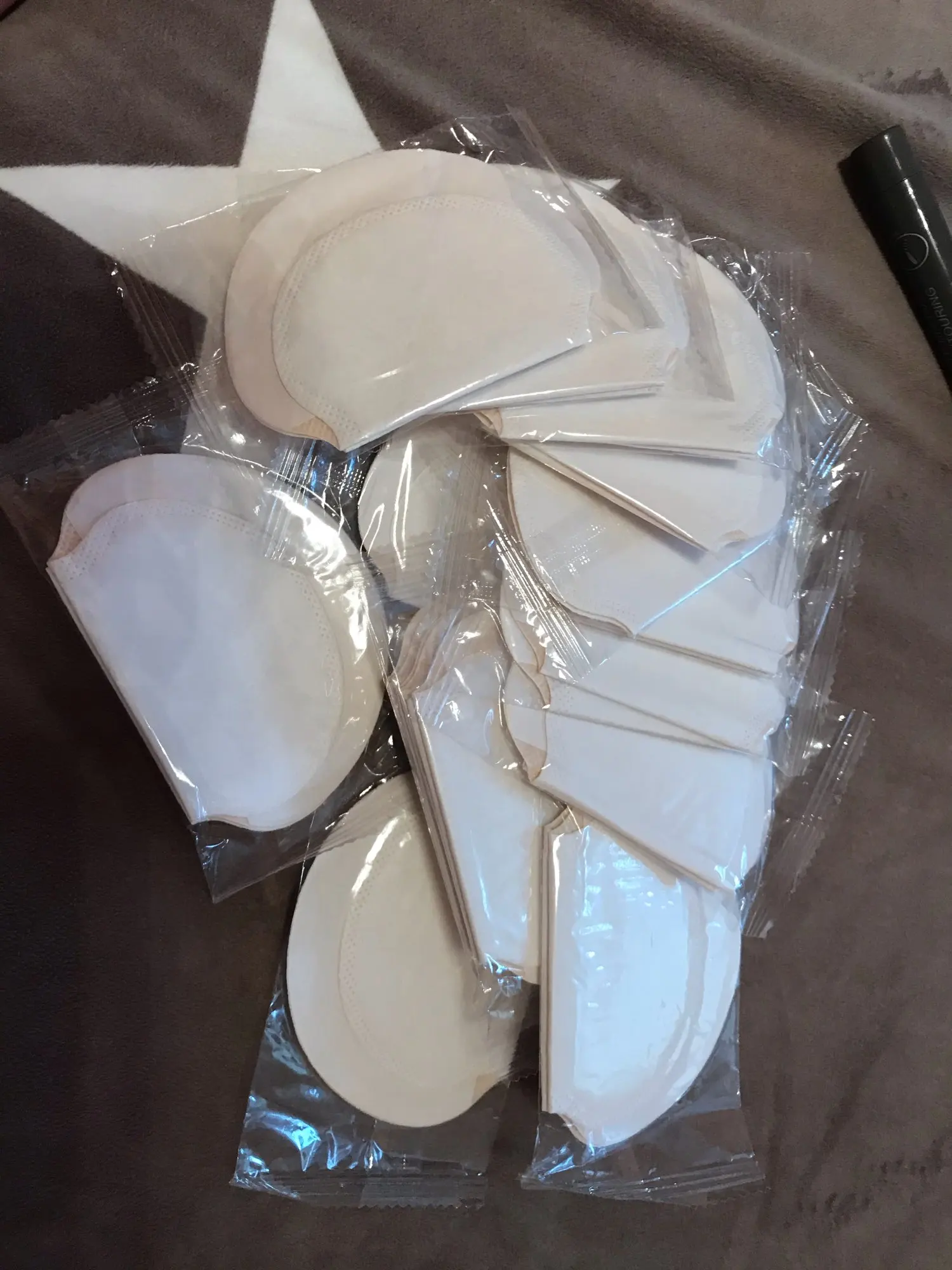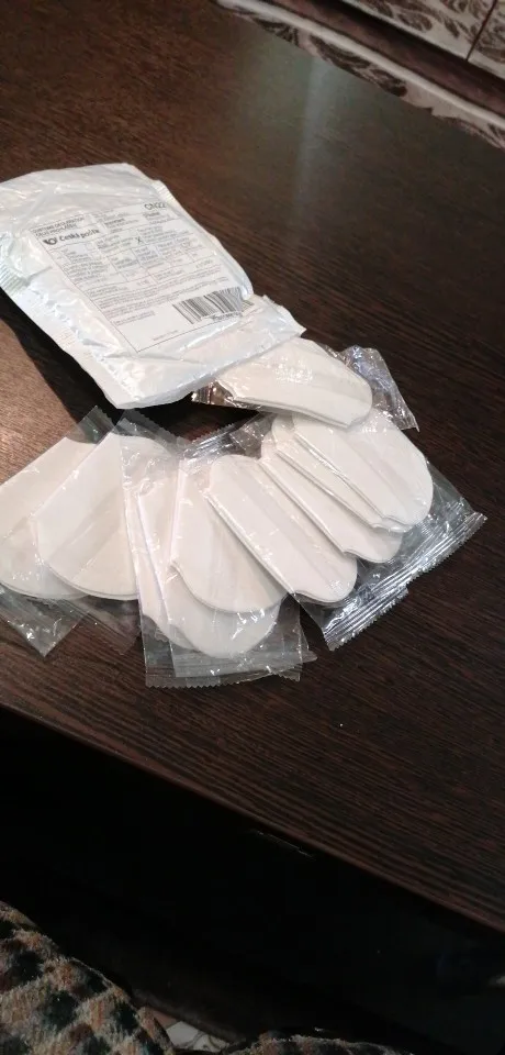 Заказываю такие прокладки от пота неоднократно. Всегда соответствуют описанию. Очень они мне нравятся! Аккуратные по размеру, отлично приклеиваются к одежде (состав ткани одежды имеет значение), хорошо снимаются, запаха нет! Только всегда ну оооочень долго идут!(( Да ещё почта России свою корректировку по доставке внесёт(( Но главное дошли!)). А в остальном всё отлично! Советую!