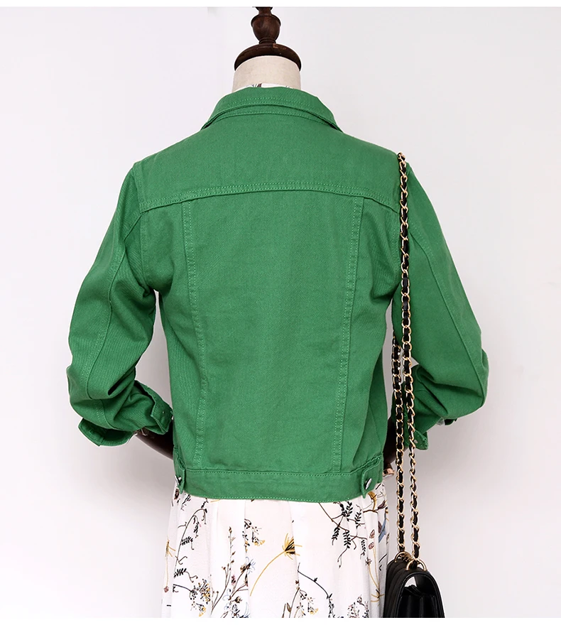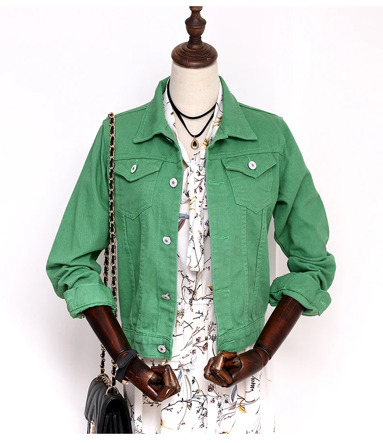 Джинсовая куртка, женская зеленая, 2020, осенняя, джинсовая, женские пальто, базовые куртки, женское Облегающее, стрейчевое короткое пальто, женская одежда