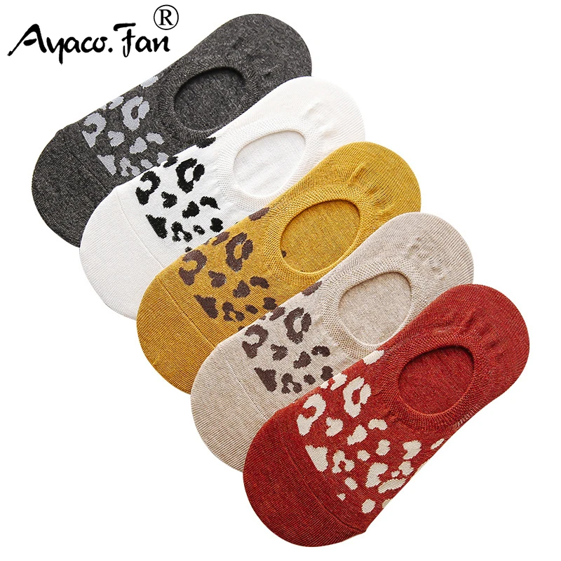 Женские носки с леопардовым принтом, летние новые Нескользящие силиконовые невидимые носки, тапочки, повседневные забавные носки для девочек, носки без шоу, 5 партлот