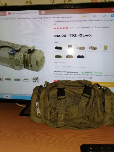 Заказ Шёл месяц до Москвы, по качеству дешевая китайская синтетика. Тактической сумкой даже и не пахнет. Все замки на молниях и тд так звенят что в лесу за километр слышно. Короче советовать не буду, покупайте на своё усмотрение. Покупал ещё одну сумку у другого продавца вот там действительно качество хоть и не дорого стоит. Пс чёрная лучше зелёной.