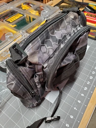 Это моя 2-я покупка этого типа поясной сумки для прогулок по стране. Его также можно носить с собой на спине и надевать через плечо, переключая основной ремень на верхние крепления. Основной отсек большой, но трудно получить доступ, потому что застежка-молния обеспечивает только разрез. (Я, вероятно, изменю это.) Боковые и передние карманы хороши для телефона и аптечки первой помощи и небольших предметов. Вертикальные наружные трубки для ручек или доступных фонарей. Задний (скрытый) карман может быть проложен для комфорта (сзади на талии). Мой выбор заключается в том, чтобы снять внешние ремешки, а короткие ремешки сверху и снизу для крепления дополнительных вещей. Многие предметы могут подойти для внешних ремней Molle, с пластиковыми зажимами-карабином. Также полезно сшить дополнительную молнию внутри, чтобы закрыть внутренний карман. Легко надеваются на молнии. Эта упаковка очень универсальна, и я рекомендую персональные модификации для вашей цели.