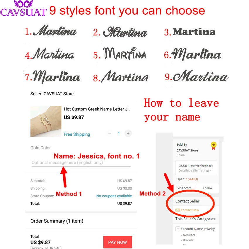 B. Свяжитесь с продавцом, укажите имя и шрифт. (Например: Здравствуйте, я хочу носить имя, шрифт № 1)