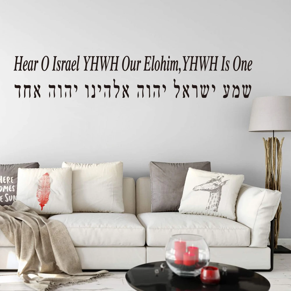 Иврит Слушайте о Израиль YHWH наш элохим, YHWH это одна буква, настенная наклейка, спальня, гостиная, Библия, цитата, настенная наклейка, винил