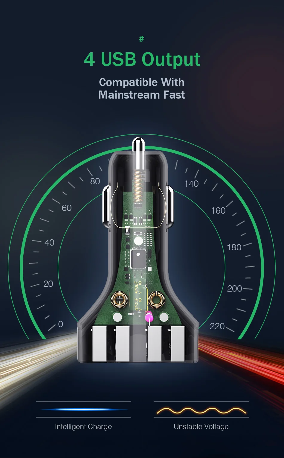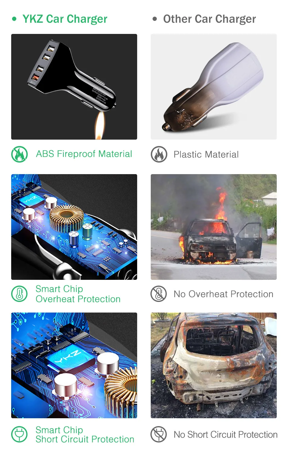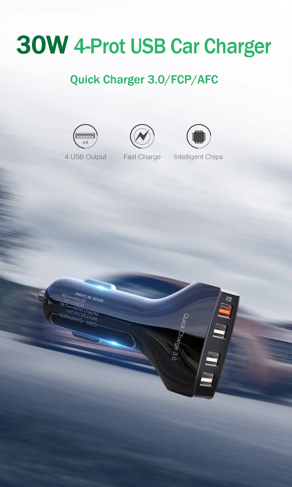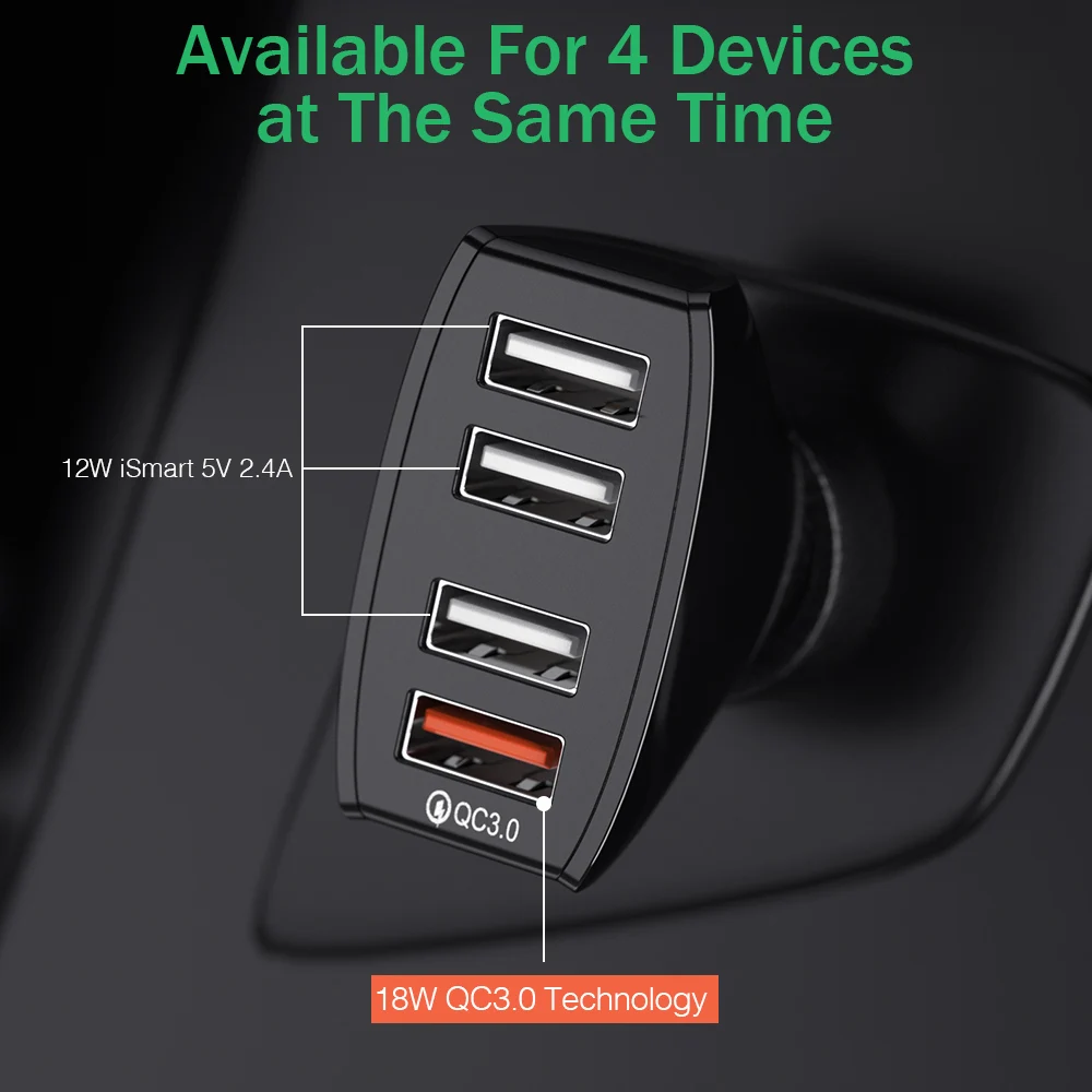 Автомобильное зарядное устройство YKZ CC01, 4 x USB Type-A, 30 Вт