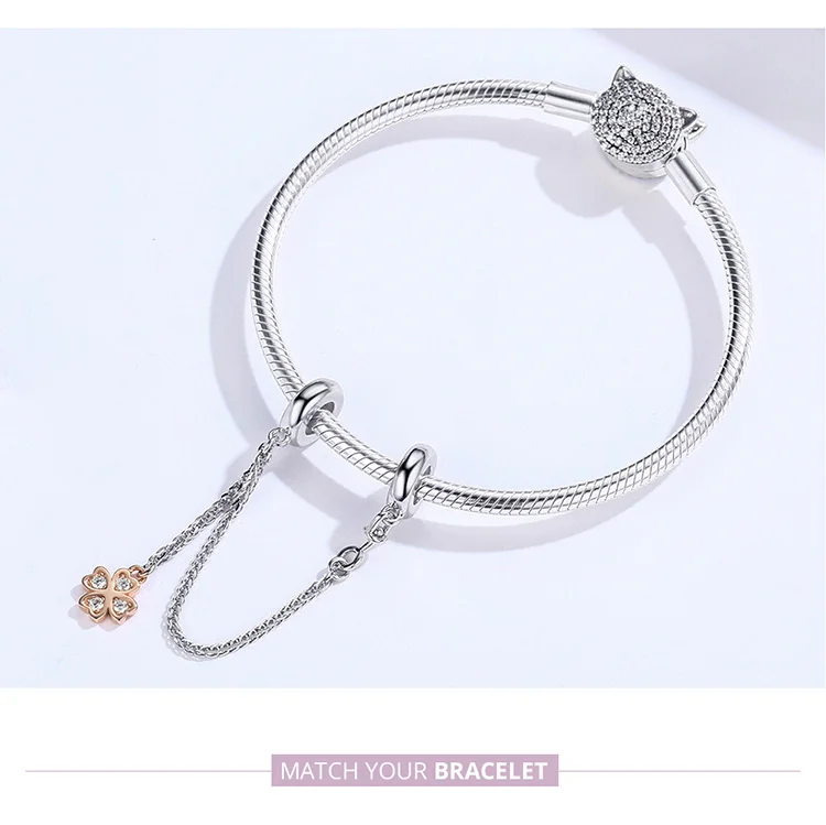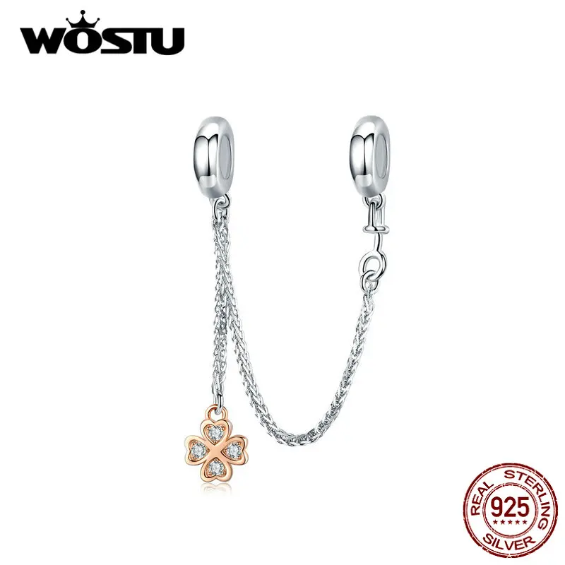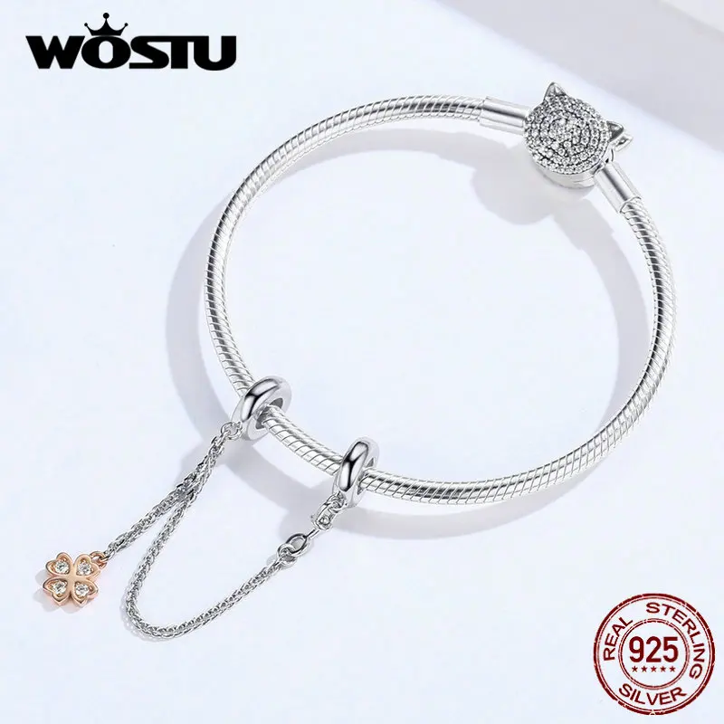 Защитный Браслет WOSTU, из розового золота, клевера, силикона, 100% бусины из стерлингового серебра 925, подходит для изготовления ювелирных изделий своими руками, CQC1261