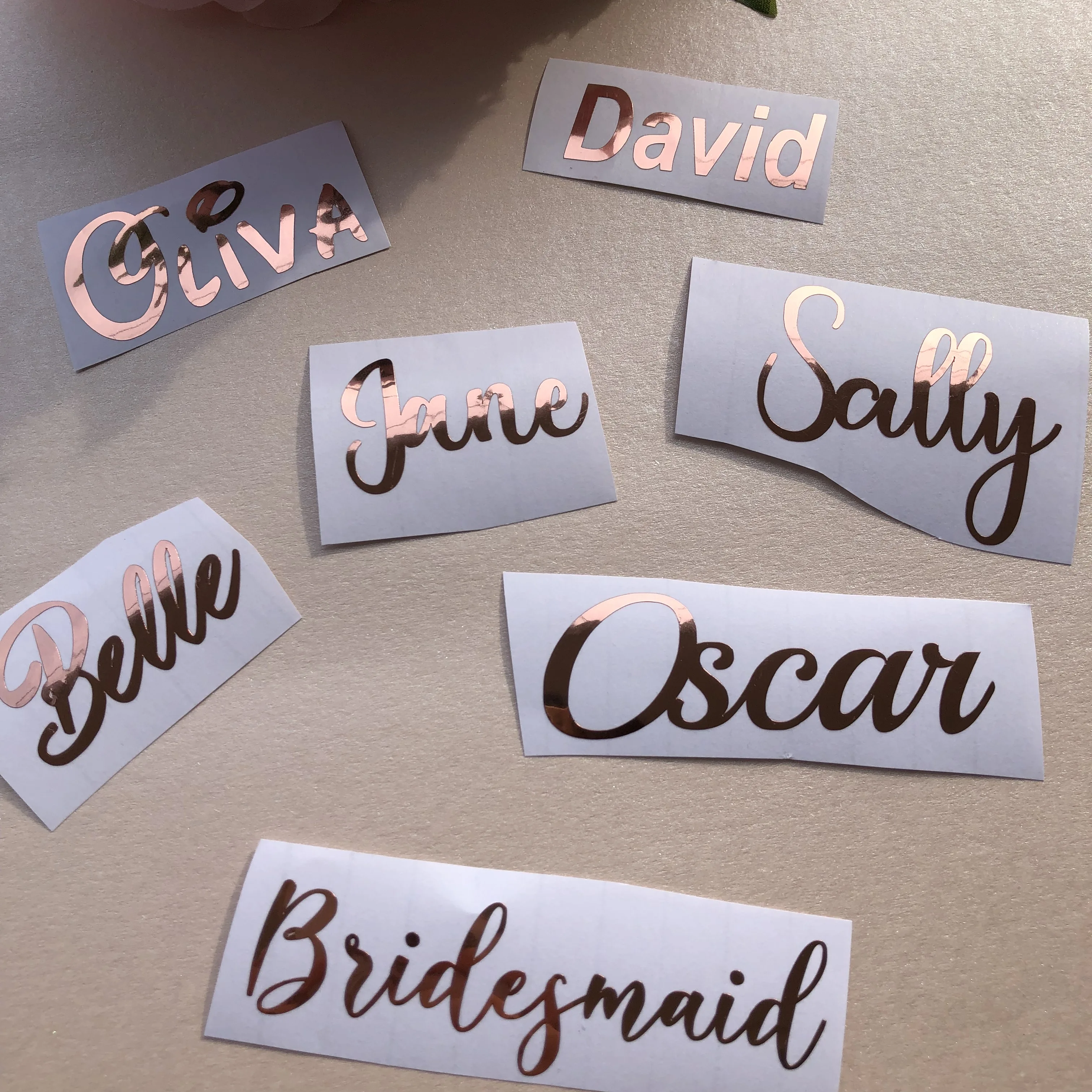 Виниловая наклейка под розовое золото с именем, для украшения винно...