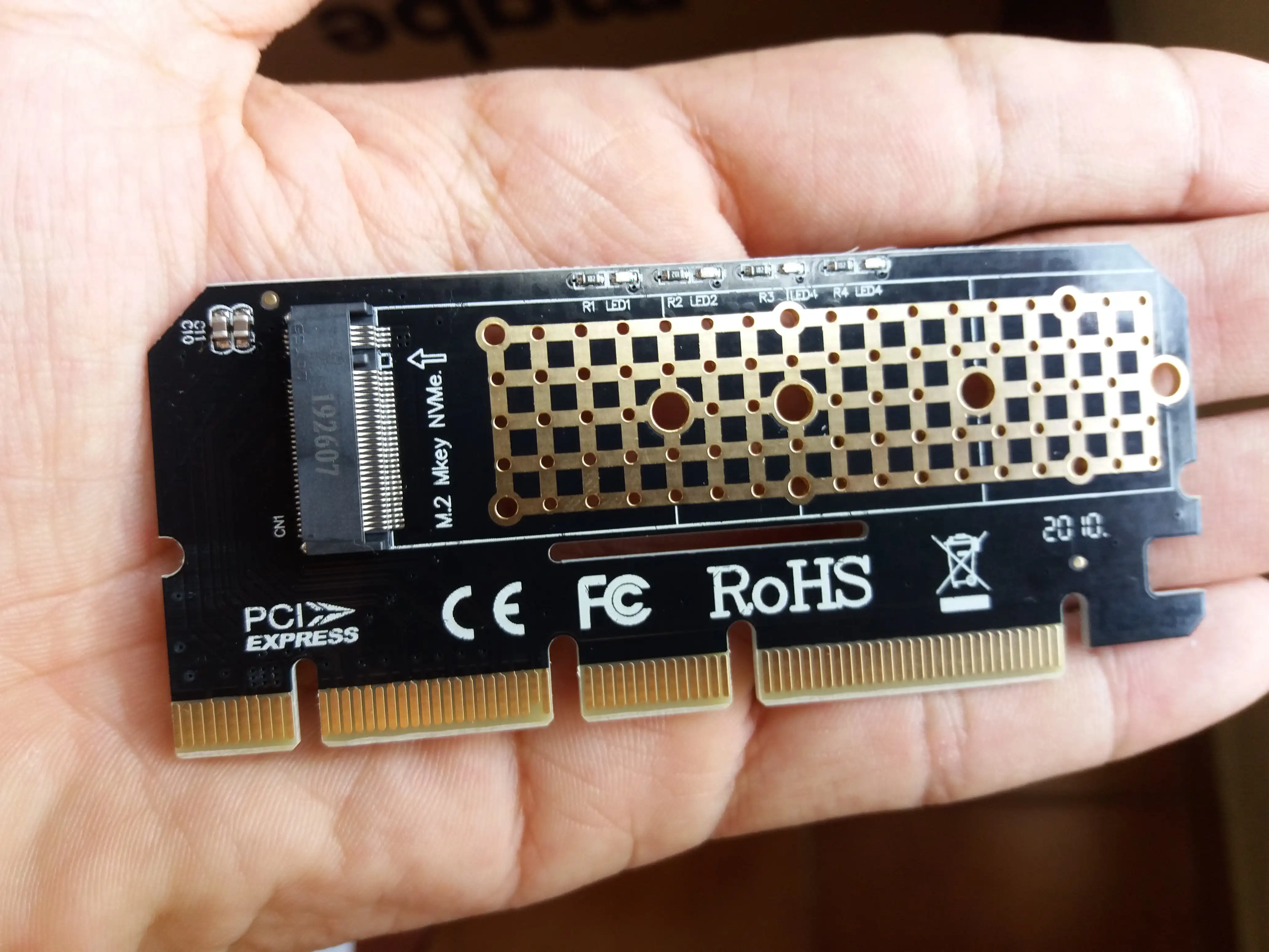 Было несколько дней тестирования, и продукт работает прямо в PCI-E x16. Есть два Samsung Evo 960 ТБ и kingdian ТБ. Контрольные показатели, SSDs Samsung достигли более высокой скорости чтения и письма, что является нормальным. Эти сборы различаются для каждого чтения и каждого ПК в зависимости от компонентов. Применение Samsung, скорость выше, но работает только с SSDs Samsung, что очень удобно. Более того, продавец был внимательен, и товар был хорошо упакован. Не облагается налогом. Есть некоторые способы доставки, которые прямые, Без сборов. Для продавца, спасибо ..