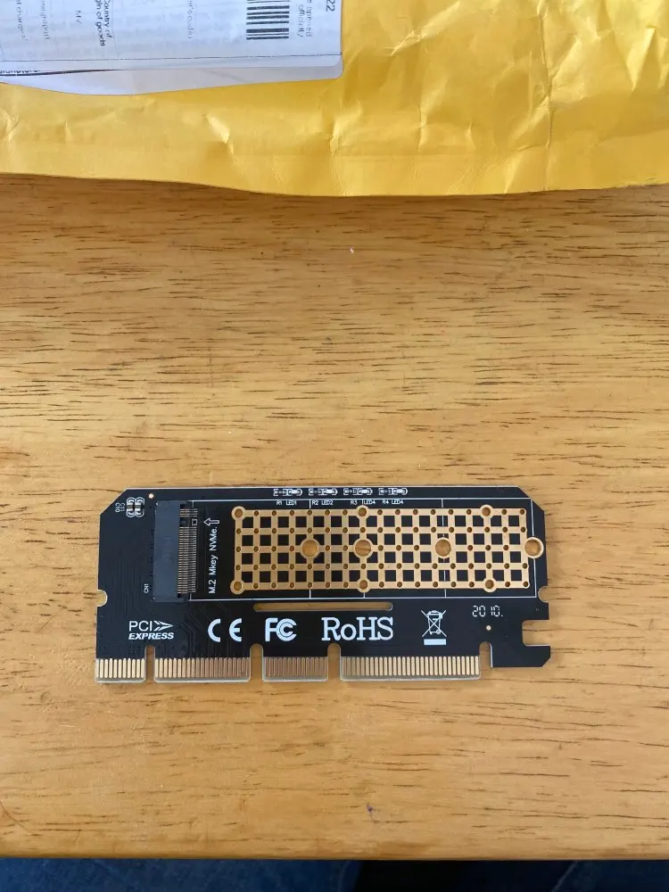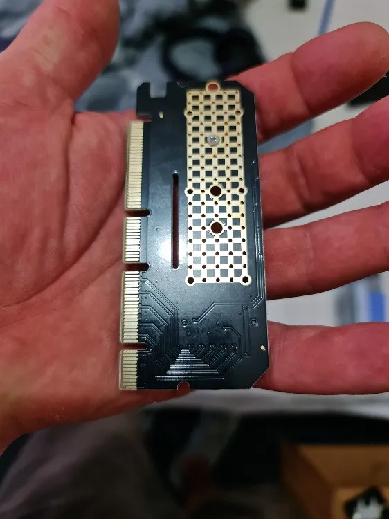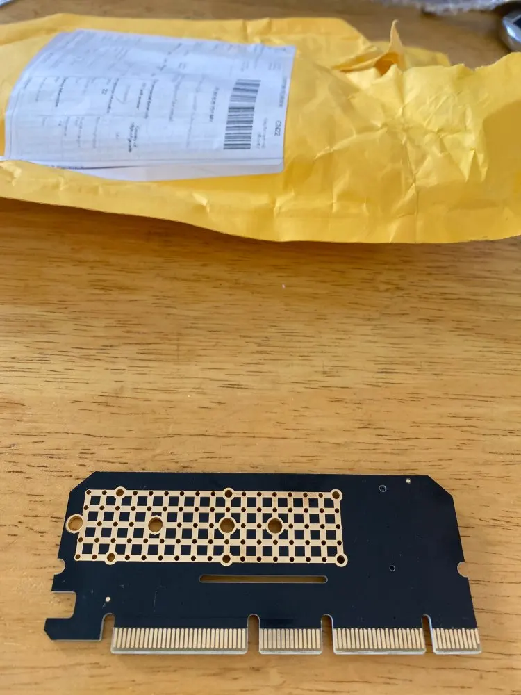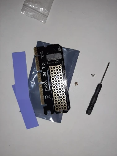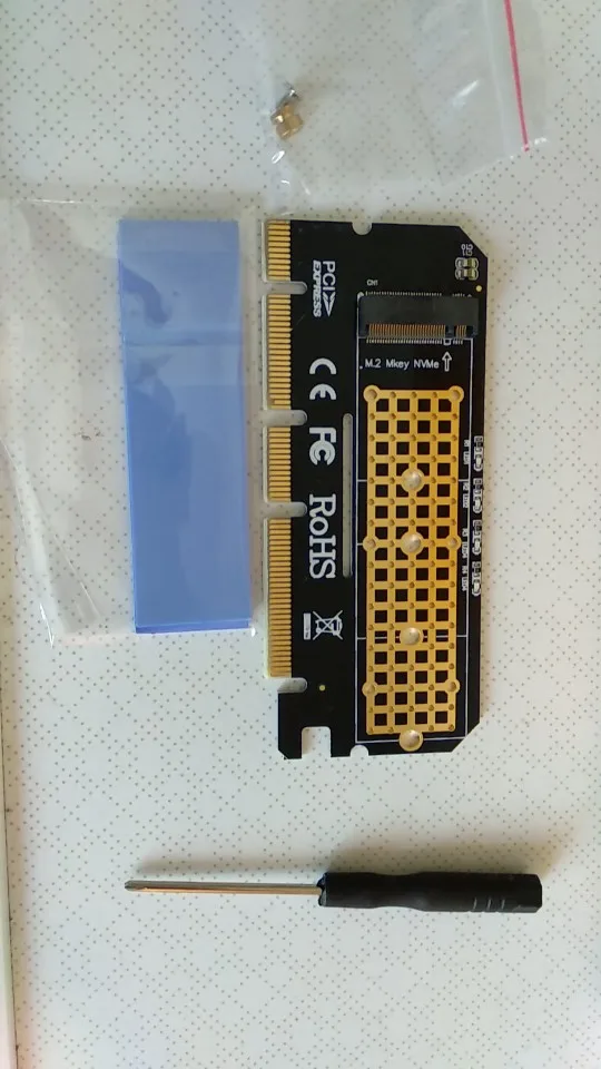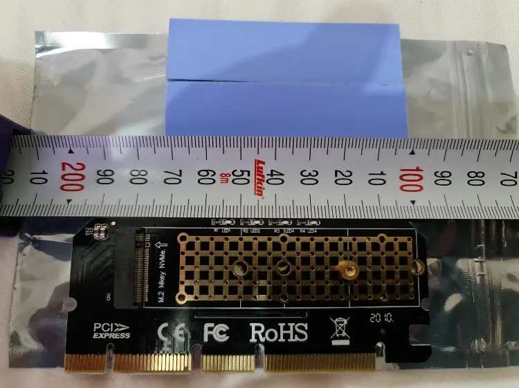 Качество выглядит превосходно, PCB кажется x16 на первый взгляд, но прослеживается x4 и выглядит совместимым с x1. x16 слотом не повредит, если вы планируете прикрепить 2280 nvme и спусковой медный радиатор. В комплект входят 2 тепловых подкладки: 0,5 мм и 1,5 мм, в которые всегда входят графические карты. Если вы честно почувствуете, что вы надавите на него достаточно сложно, чтобы даже нужно охлаждение, получите небольшой медный радиатор и используйте спусковую пасту типа kpx от kingpincool.com или хорошие тонкие графитовые прокладки, если вы предпочитаете этот путь и используете несколько резиновых полос или что-то, чтобы удерживать радиатор на модулях памяти. Контроллер памяти получит достаточно только от воздушного потока в случае спуска и будет работать лучше, чем модули памяти. Не используйте те Длинные Алюминиевые предметы, которые покрывают обе стороны и имеют толстые тепловые прокладки, они ловят больше тепла, чем они снимают, это верный способ сделать усердную работу nvme тепловой дроссельной заслонки.