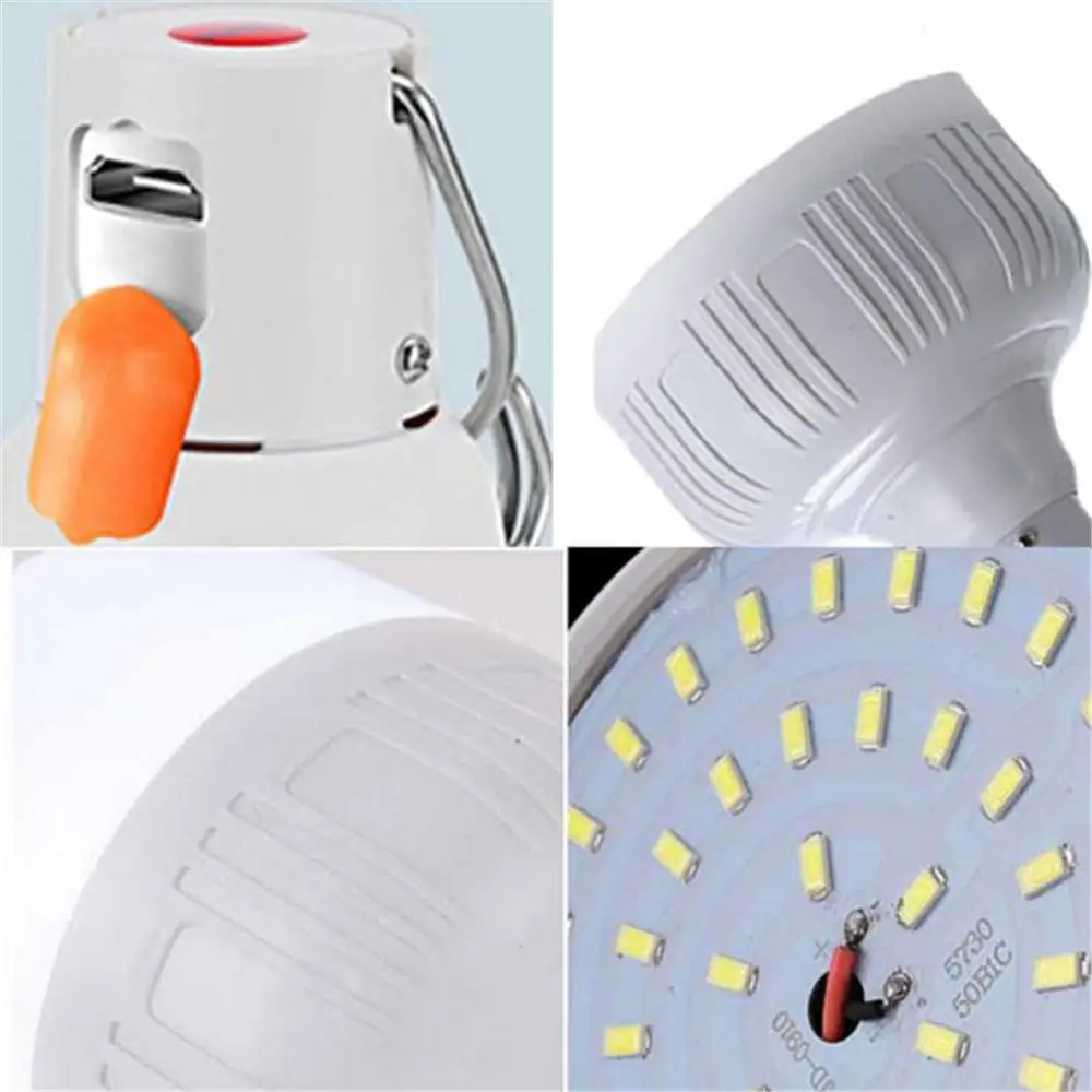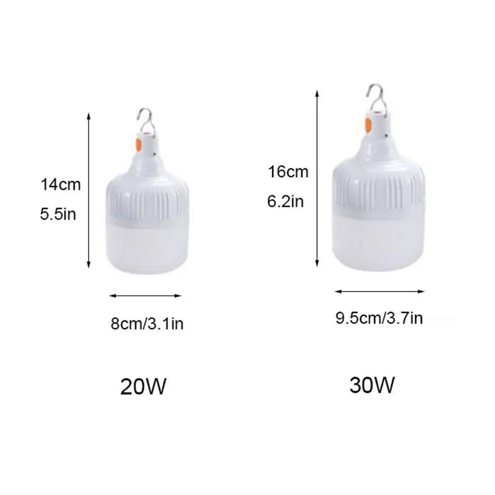 Портативный светодиодный фонарь с USB-зарядкой, белый перезаряжаемый подвесной светильник для кемпинга, палатки, уличное освещение, аварийное освещение, 30 Вт