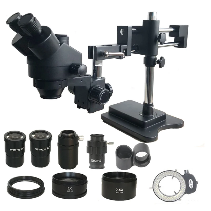 7X-45X двойной стрелы зум Simul фокусное тринокулярное стерео микроскоп 0.5X 2.0X объектив 144 светодиодные фонари ремонт телефона PCB инструменты