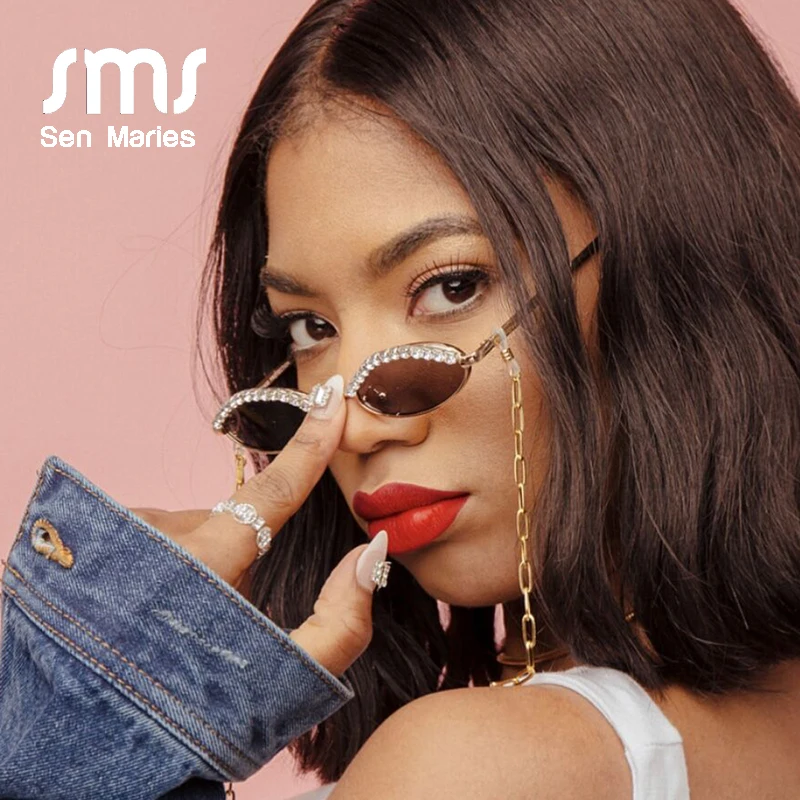 Солнцезащитные очки кошачий глаз UV400 для мужчин и женщин, модные роскошные брендовые дизайнерские овальные солнечные очки с бриллиантами из сплава