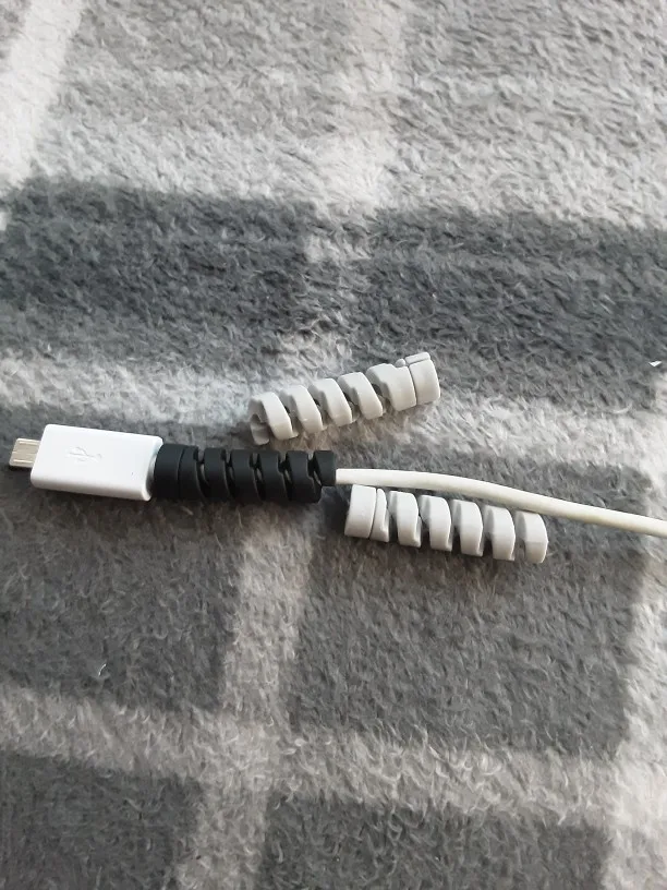 Заказывала 28.04, в страну назначения пришло 05.05 и оттуда за 8 дней до меня. Товаром довольна, все как в описании. Заказывала чёрные и белый цвет. Чёрный нормальный, но вот белый больше похож на серый. Не знаю, будет ли это предотвращать перелом провода, но со временем посмотрим. С продавцом не общалась.