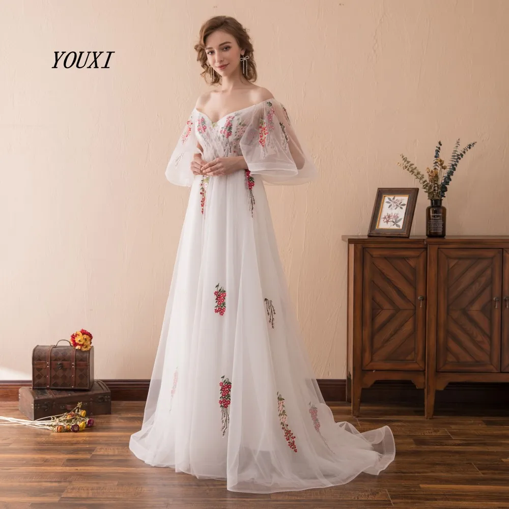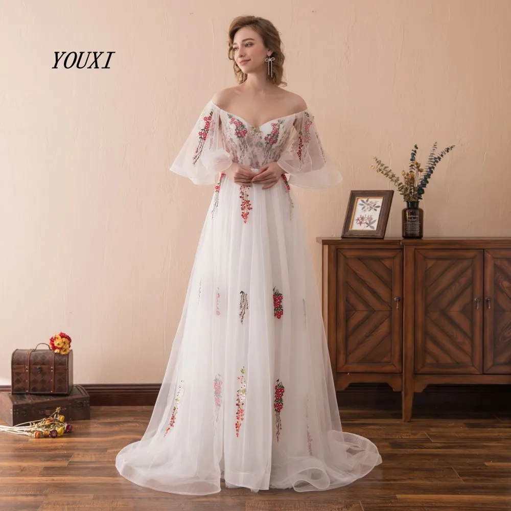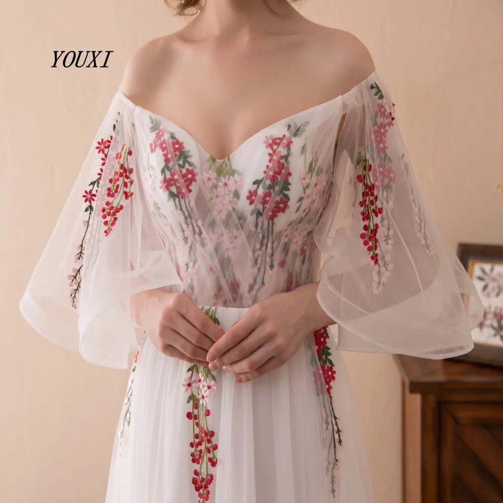 Нарядные вечерние платья Boho 2021 с открытыми плечами и v-образным вырезом, с рукавом до локтя, Нарядное вечернее платье для выпускного вечера