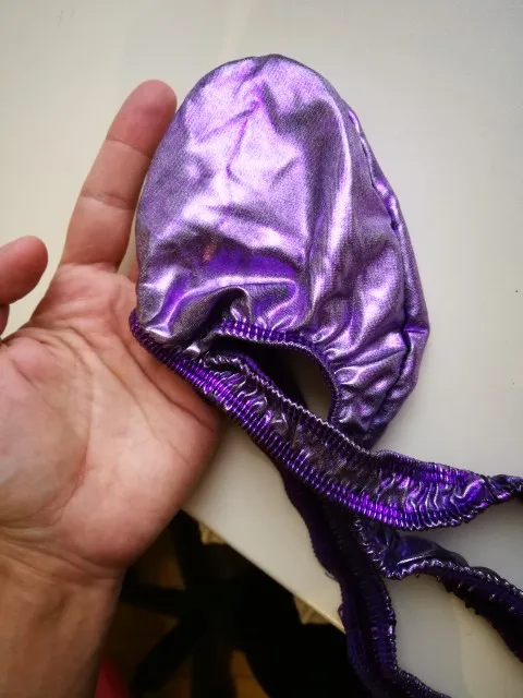 Товар занимает 2,5 месяца от заказа до доставки в Новую Зеландию. Изделие не из лакированной кожи, как описано, но материал достаточно тонкий, блестящий хлопок и плотно прилегает. Я 1,82 м, 74 кг и размер S хорошо сидит. Сумка держала мои гениталии и выдавливала их вверх и наружу. Больше фотографий доступно по запросу.