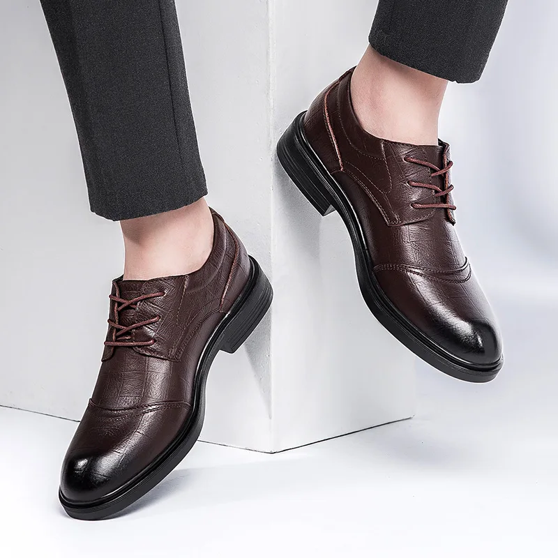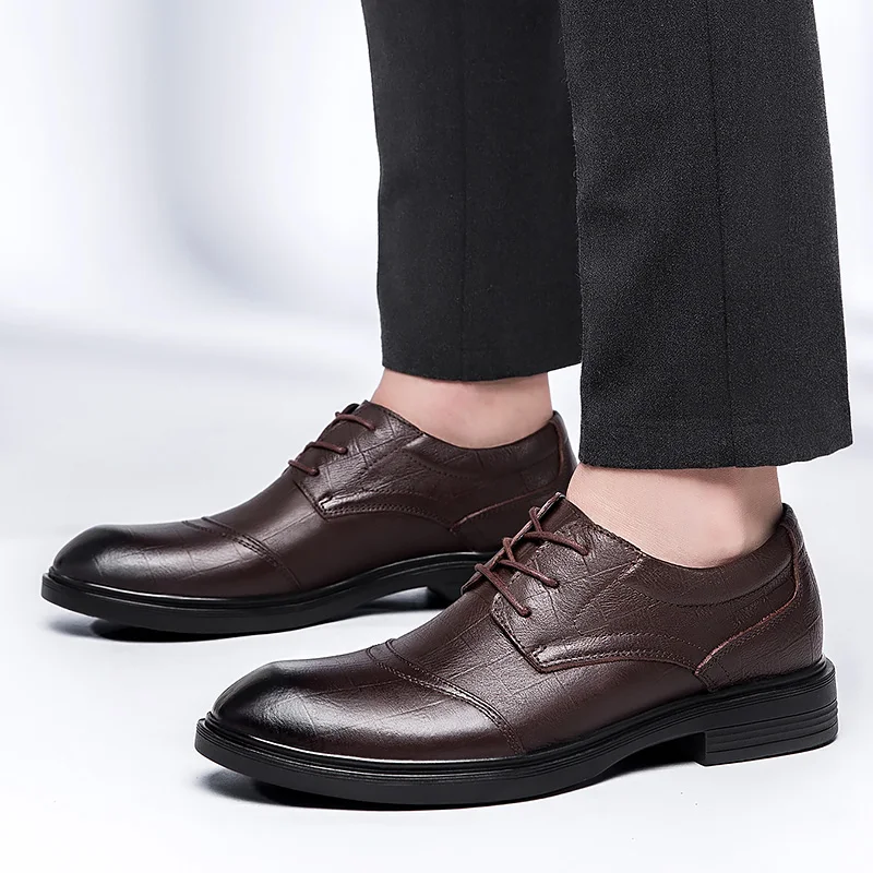 Дышащая мужская повседневная обувь на шнуровке, модная кожаная обув...