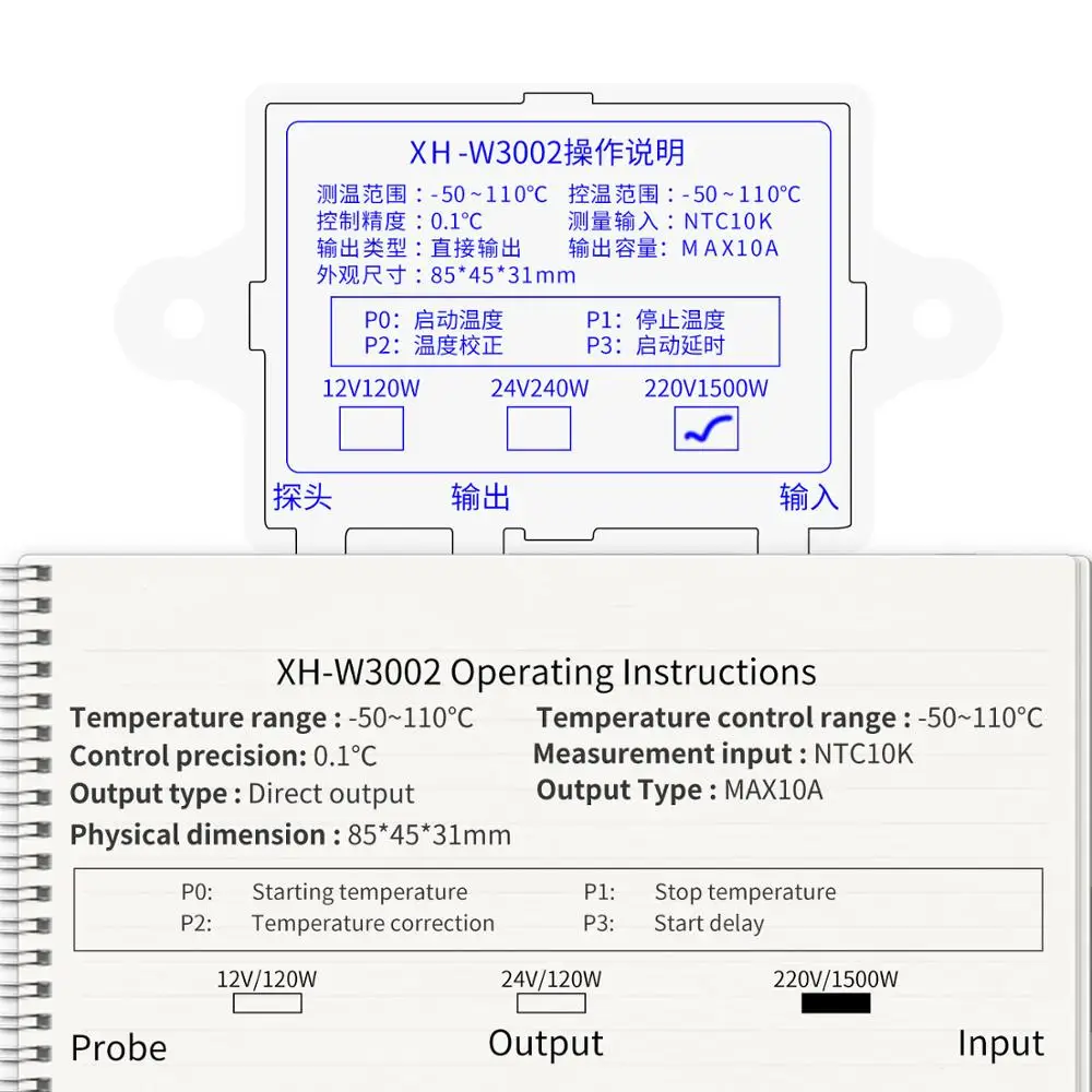 12V 24V 220V Профессиональный W3002 цифровой светодиодный регулятор температуры 10A регулятор термостата XH-W3002