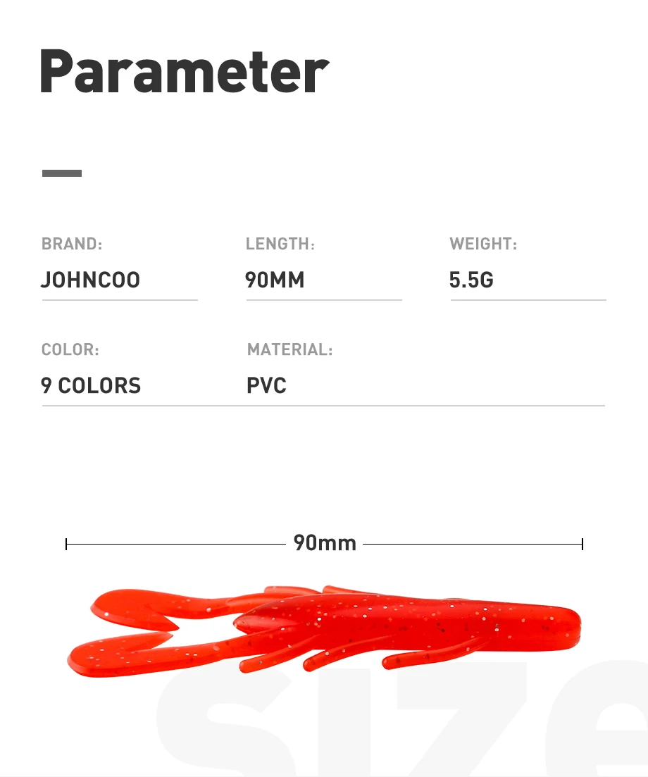 JOHNCOO рыболовные приманки в виде креветок, 90 мм, 5,5 г, 8 шт., креветки, 2 огромных ловли, Мягкая приманка, приманки для окуня