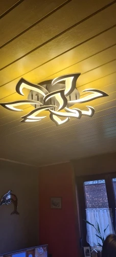 Очень хорошее освещение. Довольно легко собрать. Лучше быть 2 для укладки, потому что для установки болтов, винтов и износа, это не так просто. Пульт дистанционного управления немного переставал. Учитывая цену, очень Счастливый. Хорошая яркость. Быстрая и аккуратная доставка.
