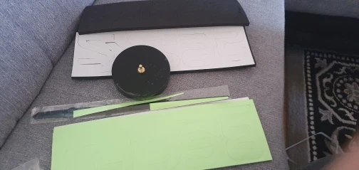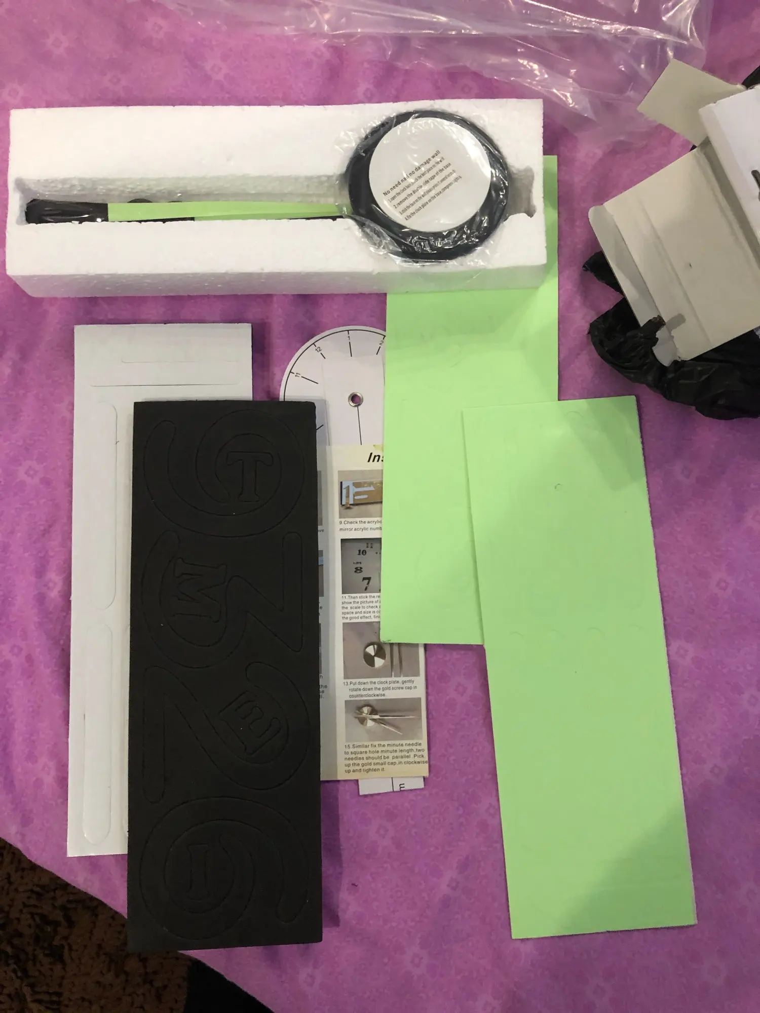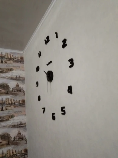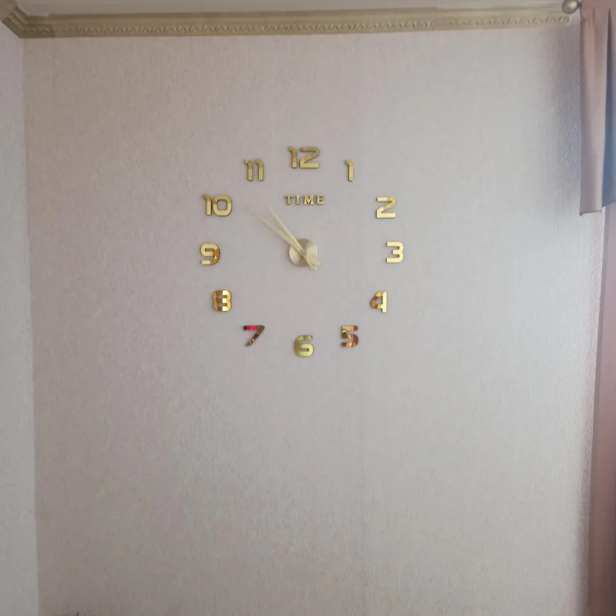 Отличные часы. Цифры покрыты плёнкой от царапин, которую нужно снять. Жаль, на механизме такой пленки нет. Заказывали размер 27дюймов, стрелки кажутся маловатыми по сравнению с цифрами. Желательно заранее точно наметить место, так как после повторной приклейки часы долго не держатся.