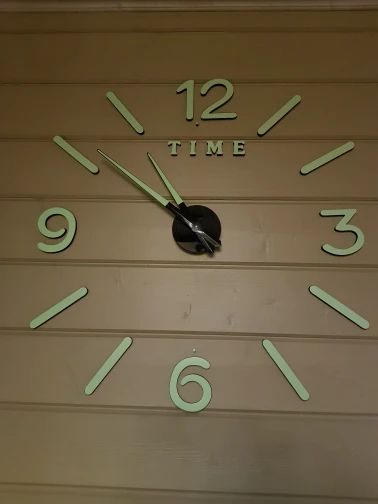 Часы супер. Очень стильно смотрятся. В установке простые. Мы краской нарисовали два круга. Смотрится хорошо. В тёмной комнате просто шикарно светятся. Доставка 2 месяца, но это того стоит. Спасибо продавцу. Вся семья довольна)