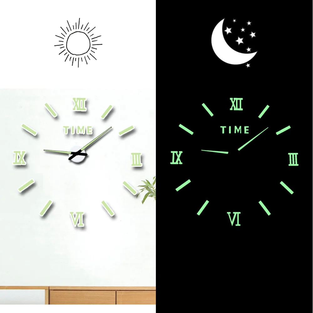Часы настенные, большие, 3D, светящиеся, зеркальные